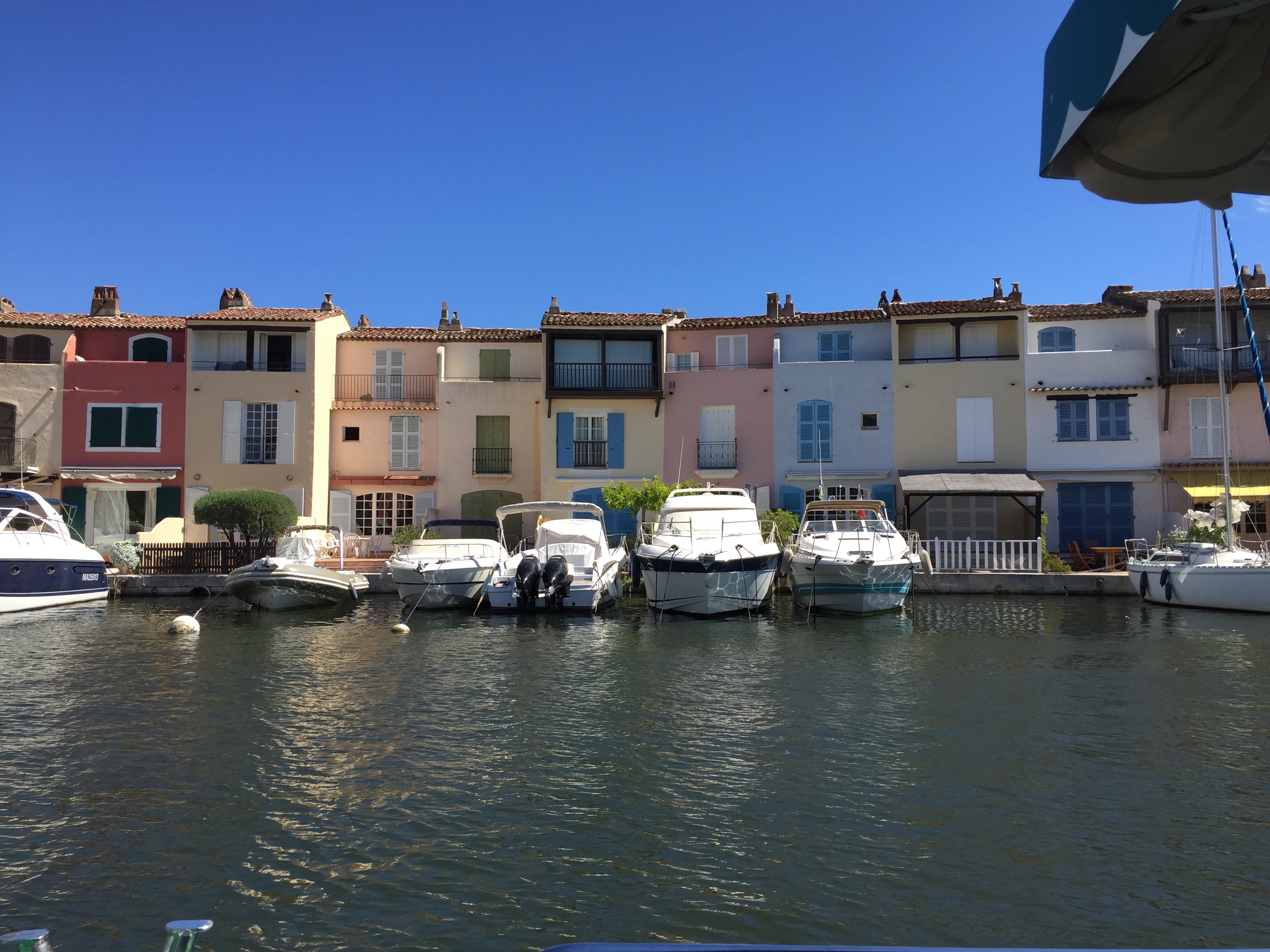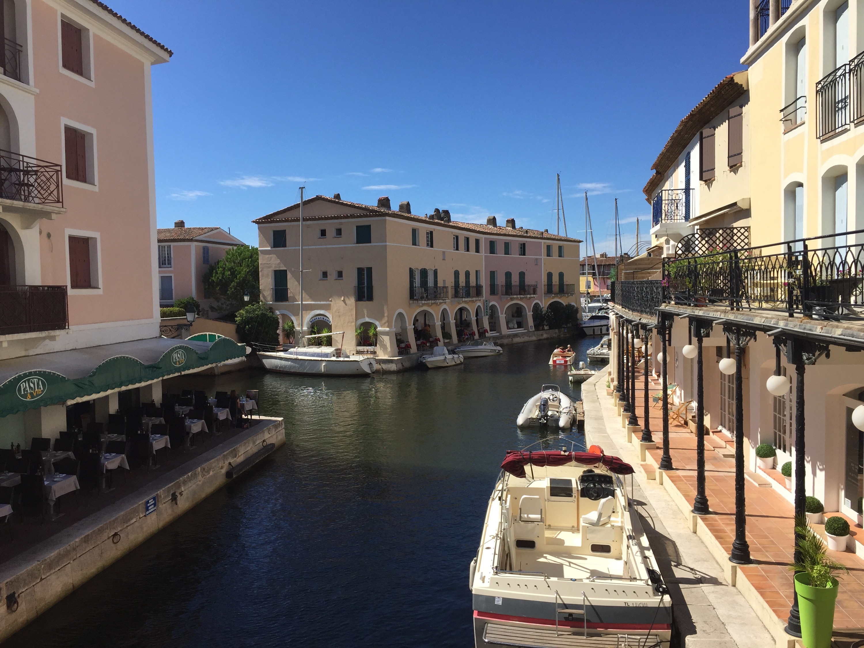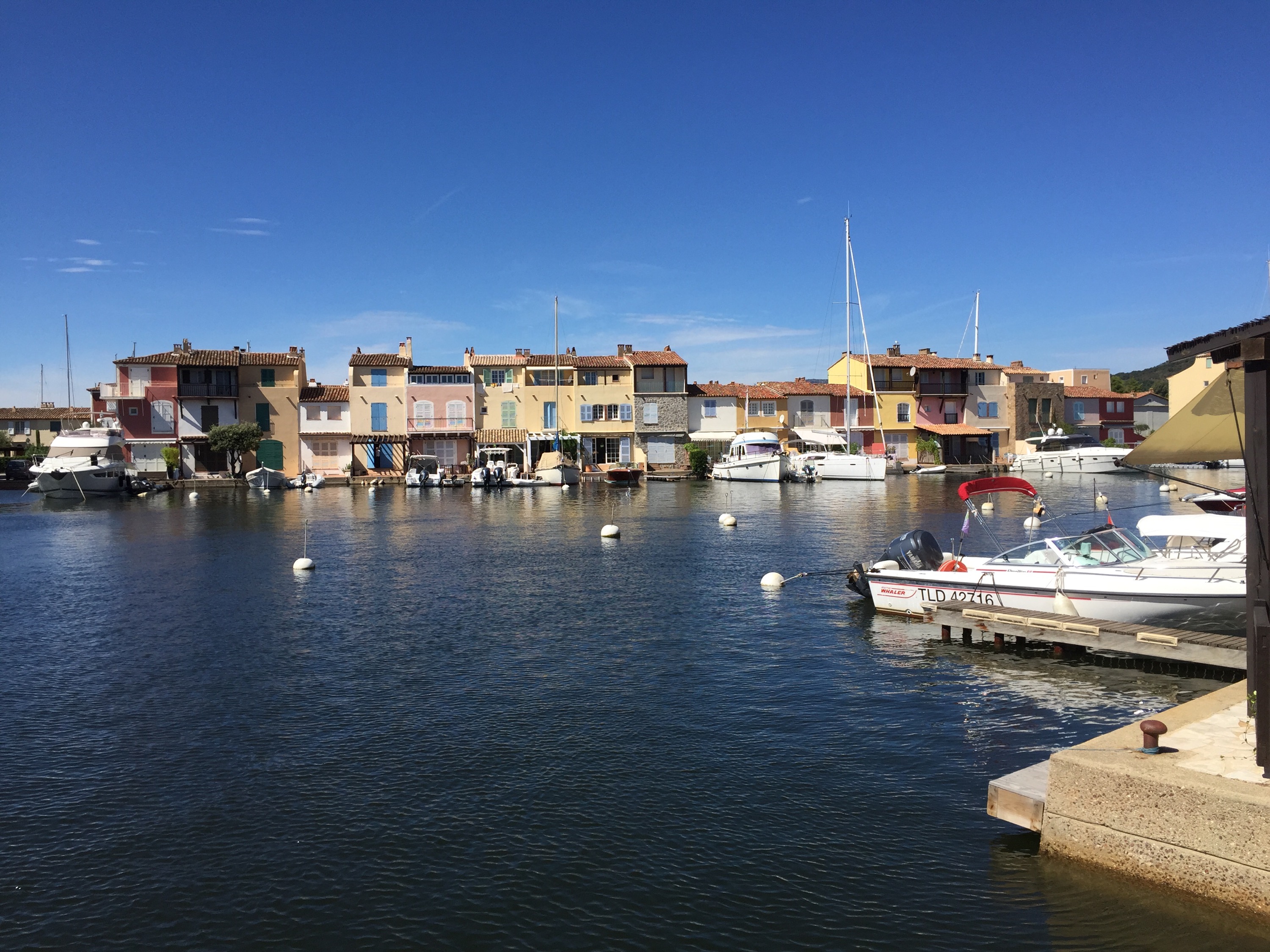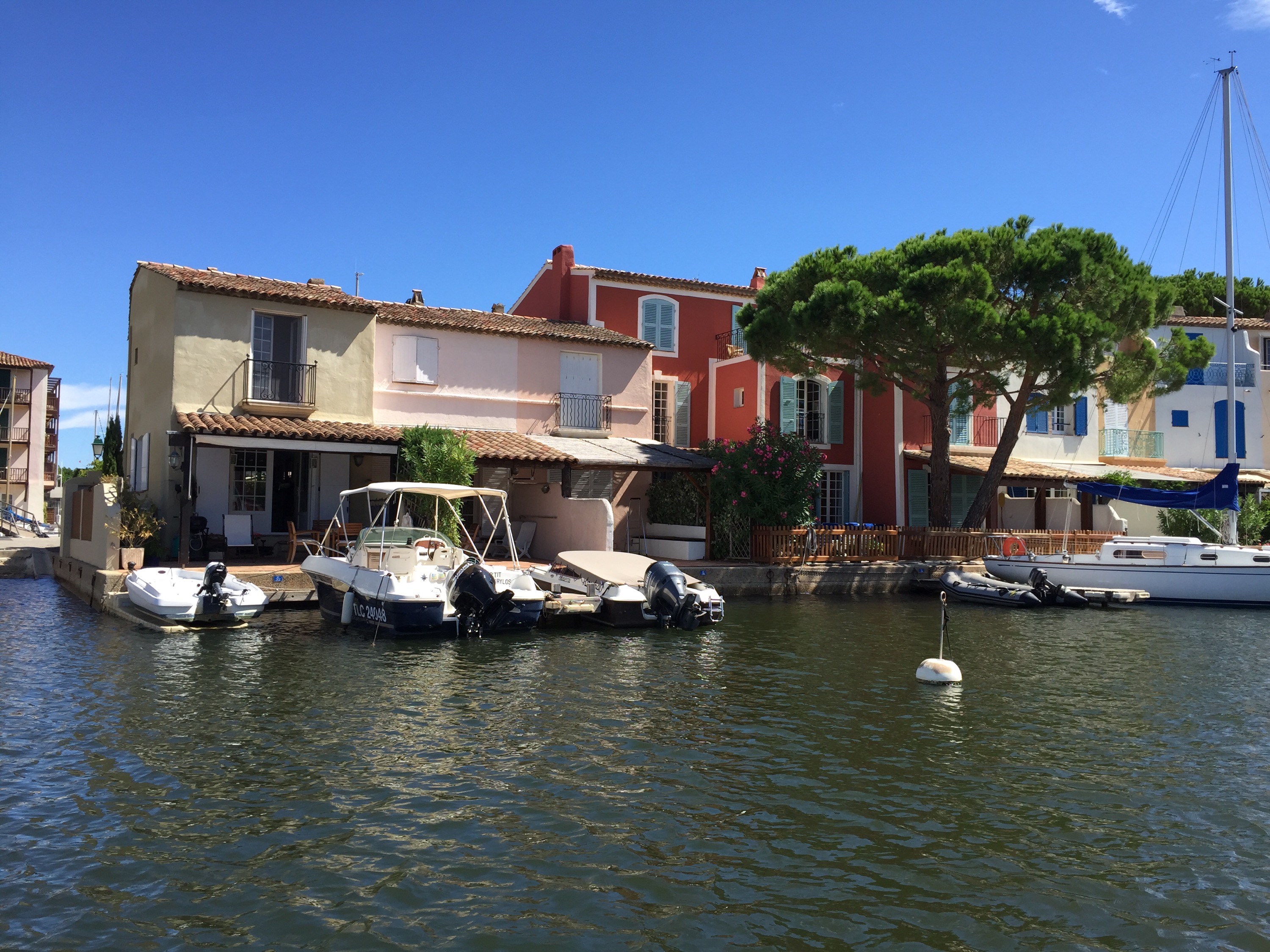 liegt zwischen Saint Maxime und Saint Tropez. Ein Dorf mit Kanälen, Brücken und bunten Häusern. Vor fast jedem Haus „parkt“ ein mehr oder weniger großes Boot. Es ist wunderschön mit einem E-Boot durch die Kanäle zu schippern.