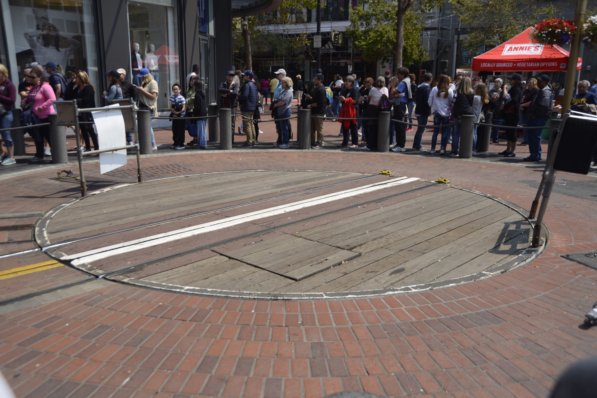 Am Ende der Strecke mit Wendeplatte (händisches Drehen der Cable Car für die Rückfahrt)