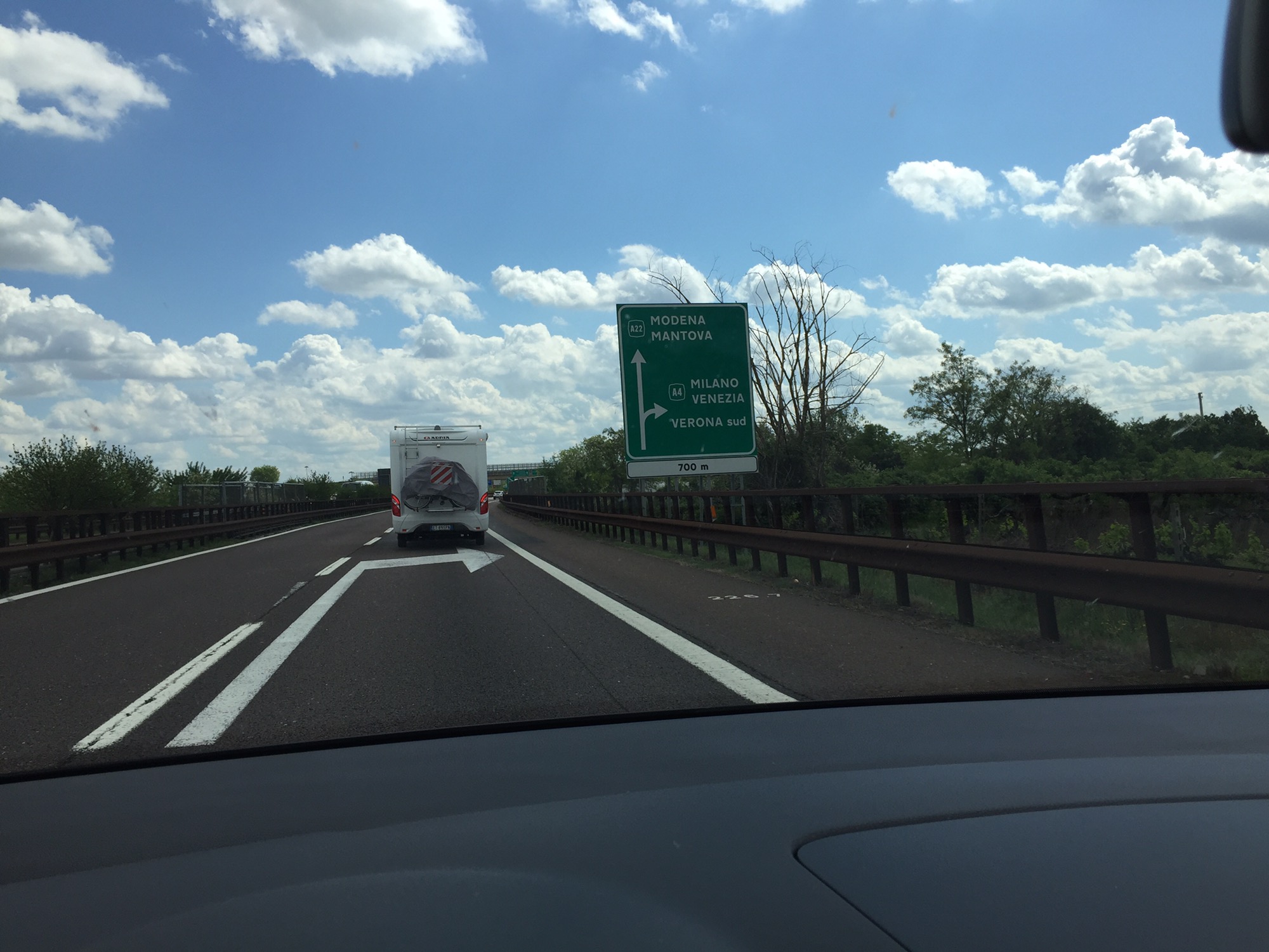 Die Fahrt weiter nach Padua ging zügig voran und das Thermometer ist stetig gestiegen. Abzweig in Richtung Venedig …