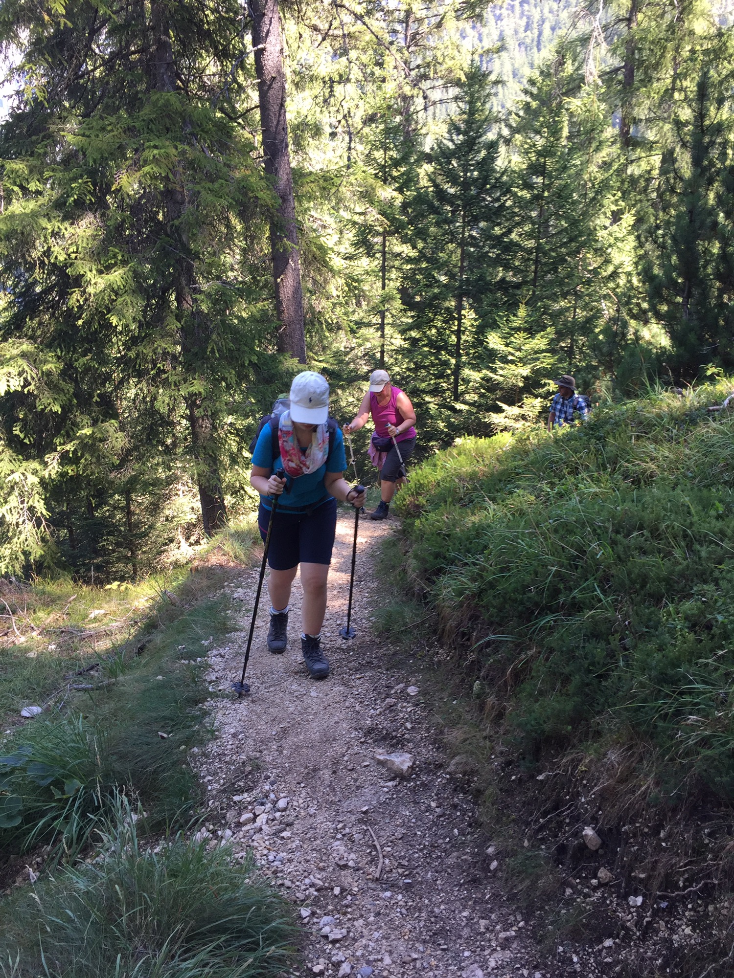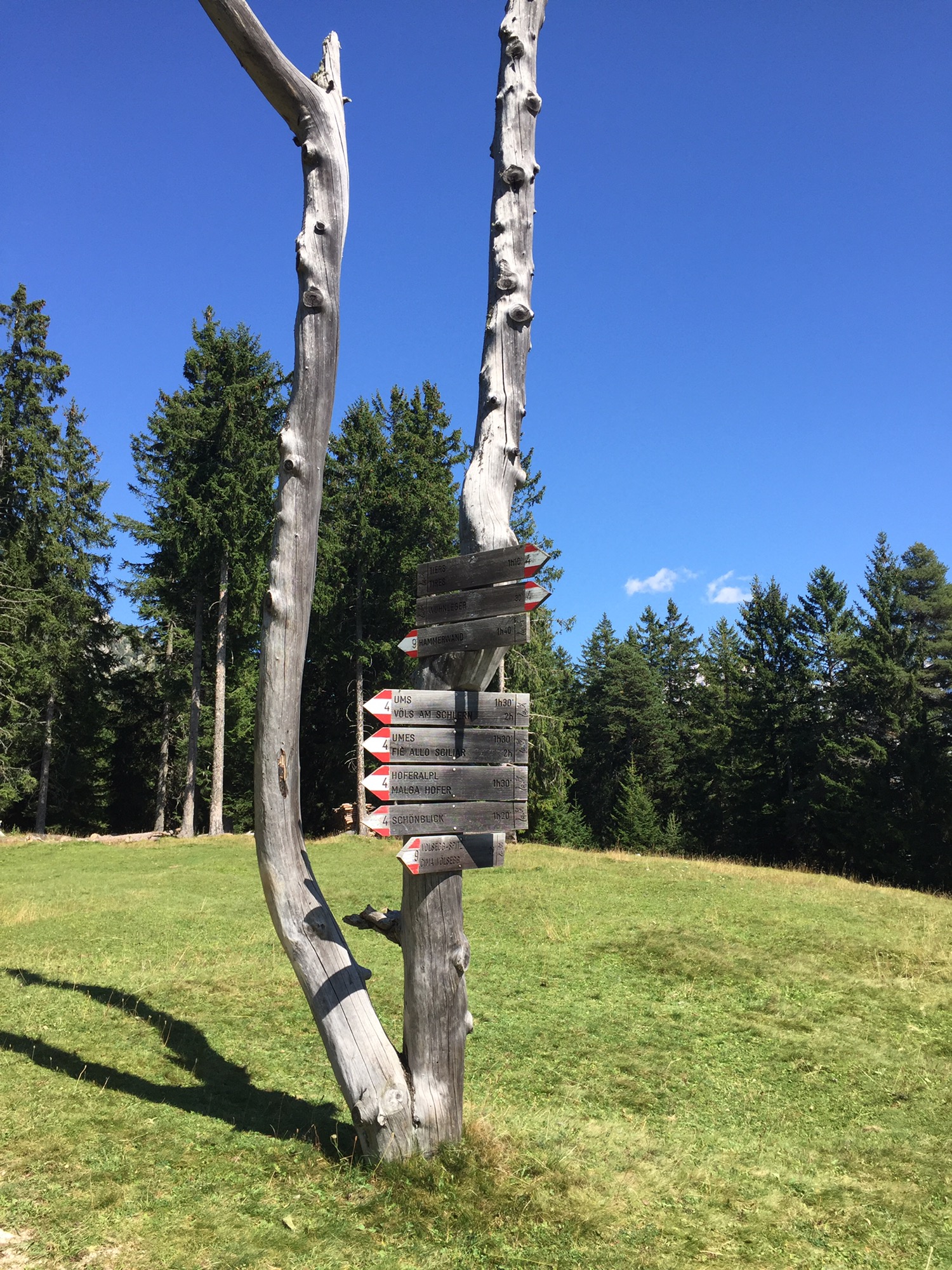 Zum Einlaufen sind wir von unserem Quartier in Völs – Schlunhof – losgewundener. Unser Ziel war die Tschafon-Hütte auf 1.733 m. Der Weg führte teils im Wald gelegen steil nach oben.