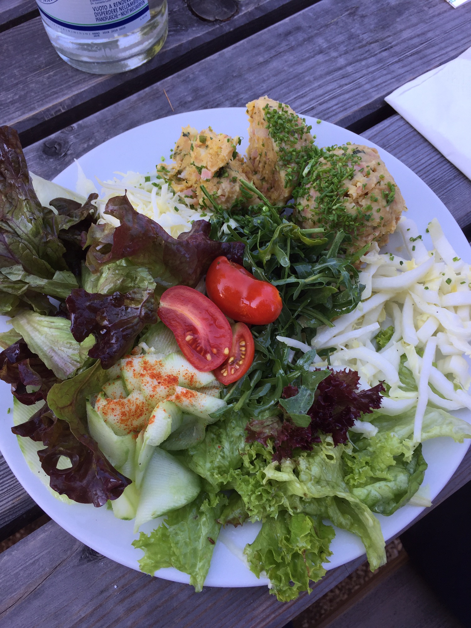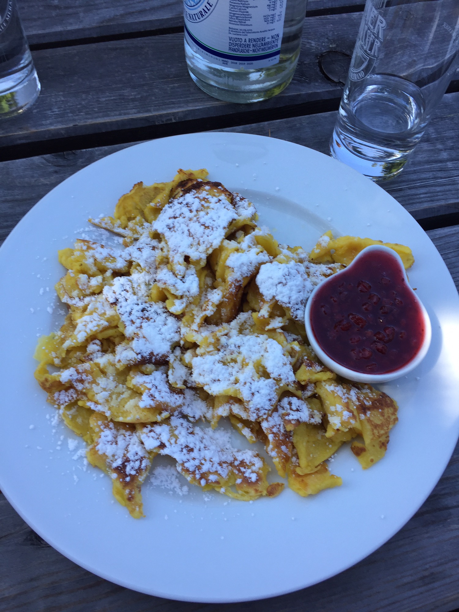 Nach gut 3,5 Stunden sind wir an der Hütte angekommen. Noch schnell was zu Essen bestellen und dann die Aussicht genießen.