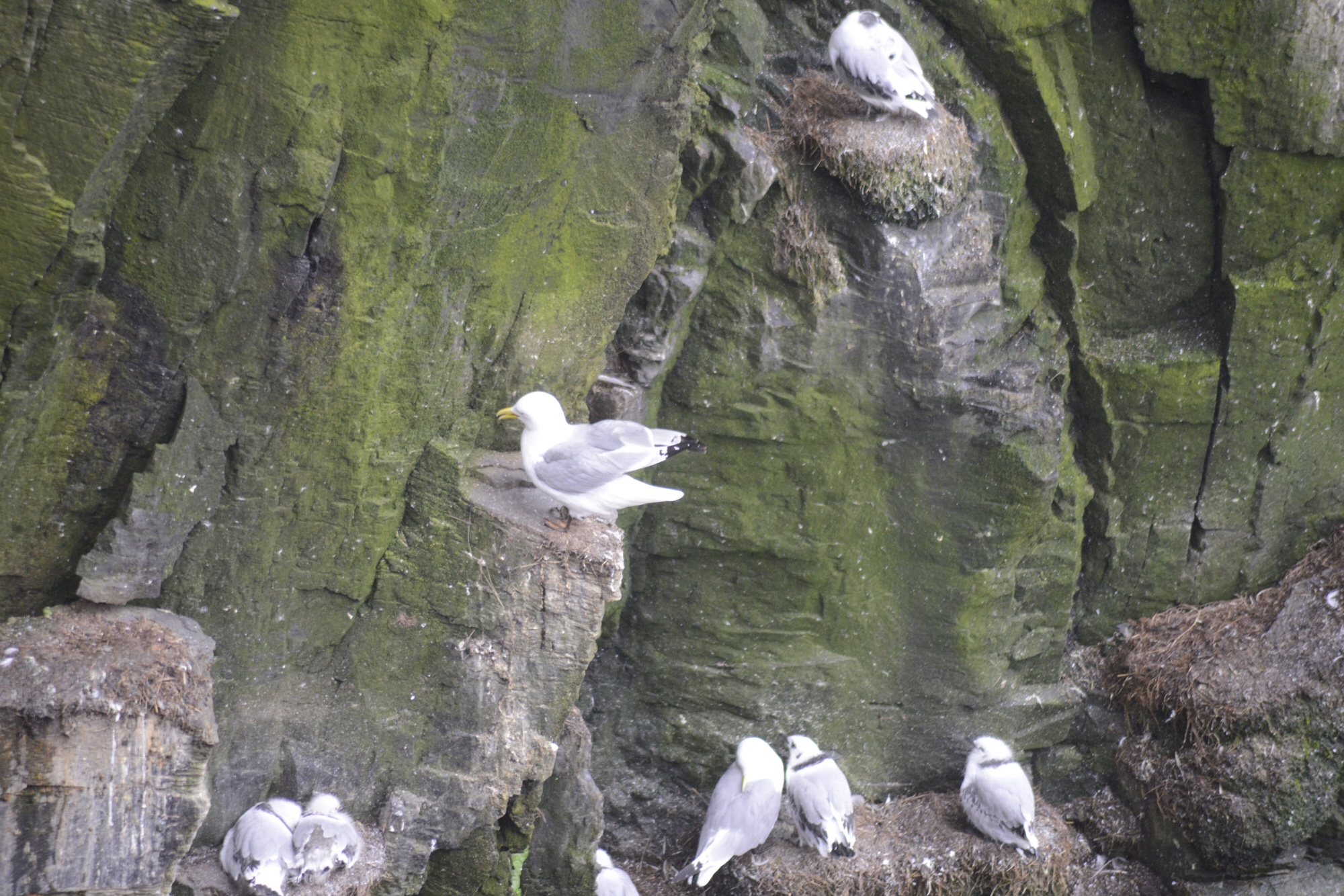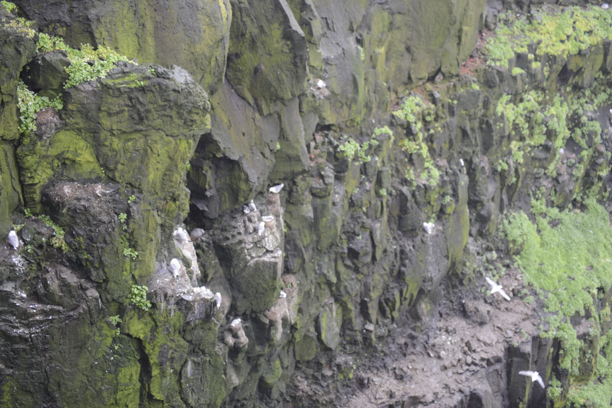 Nach Grönland sind es von hier aus ca. 260 km. An den Felswänden sind neben Möven