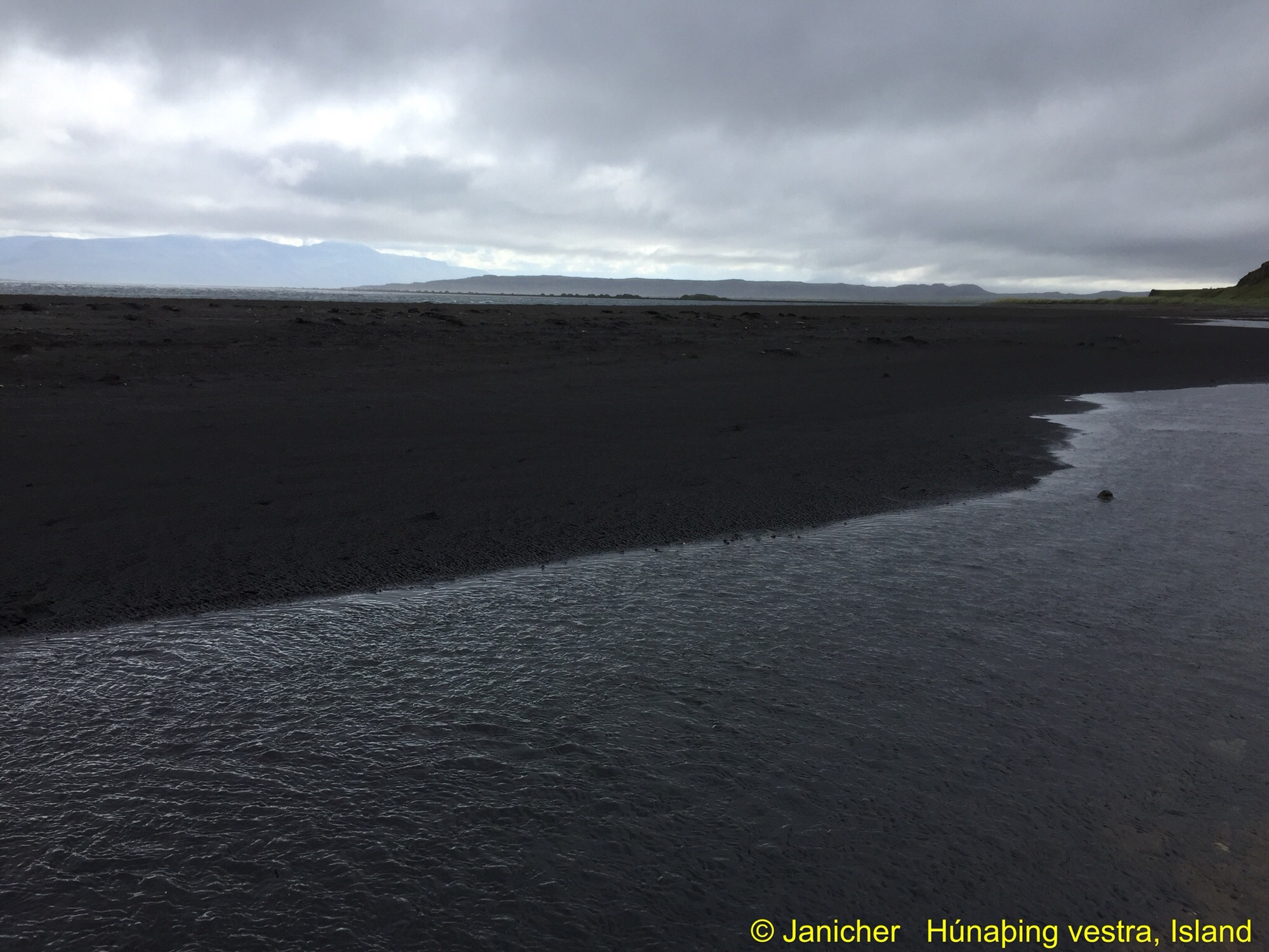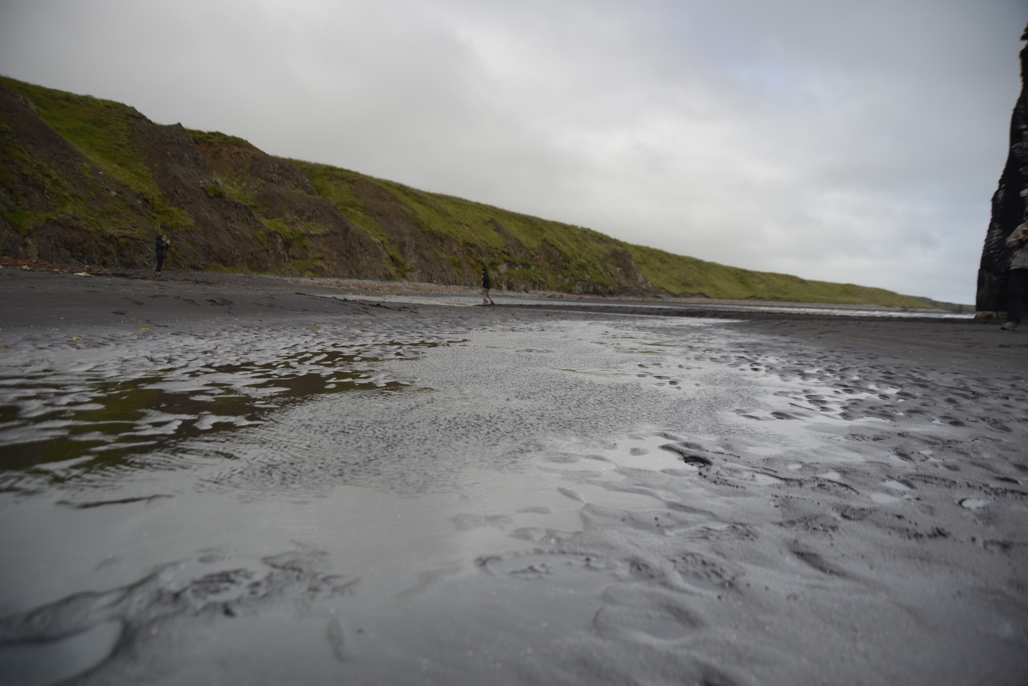 Leider nicht optimal, aber auf dem schwarzen Strand befinden sich grüne Grashügel.
