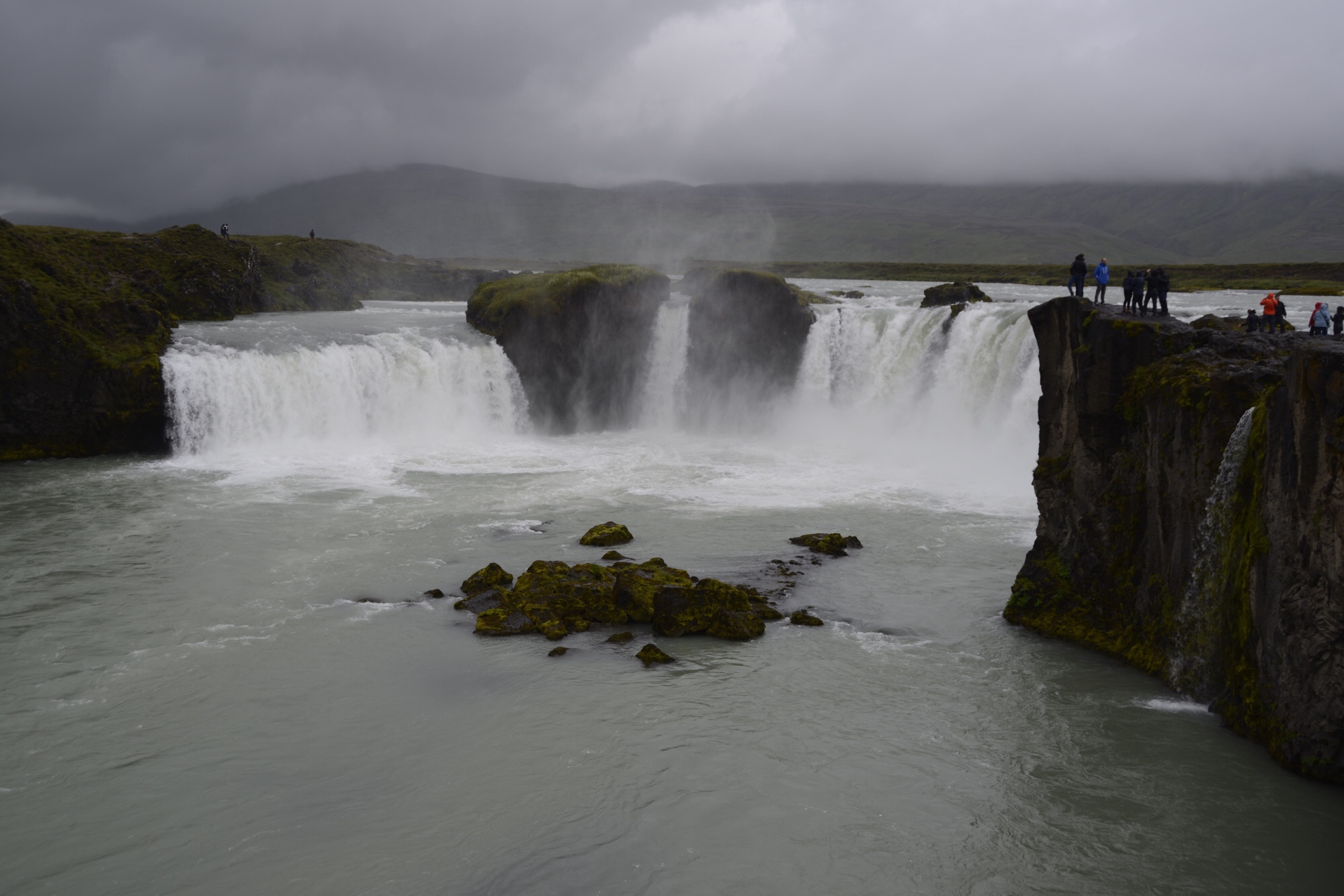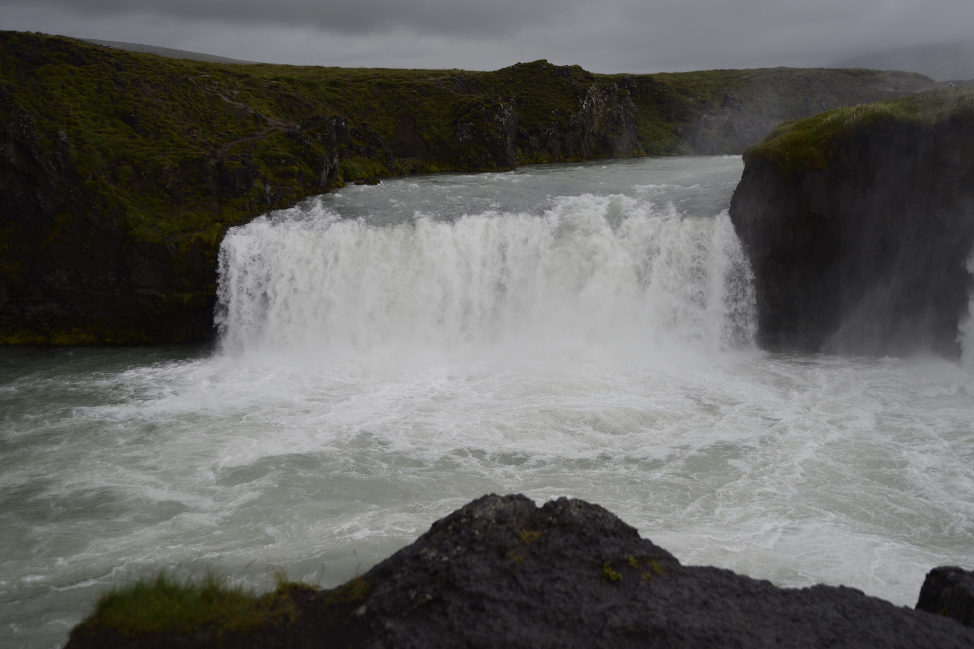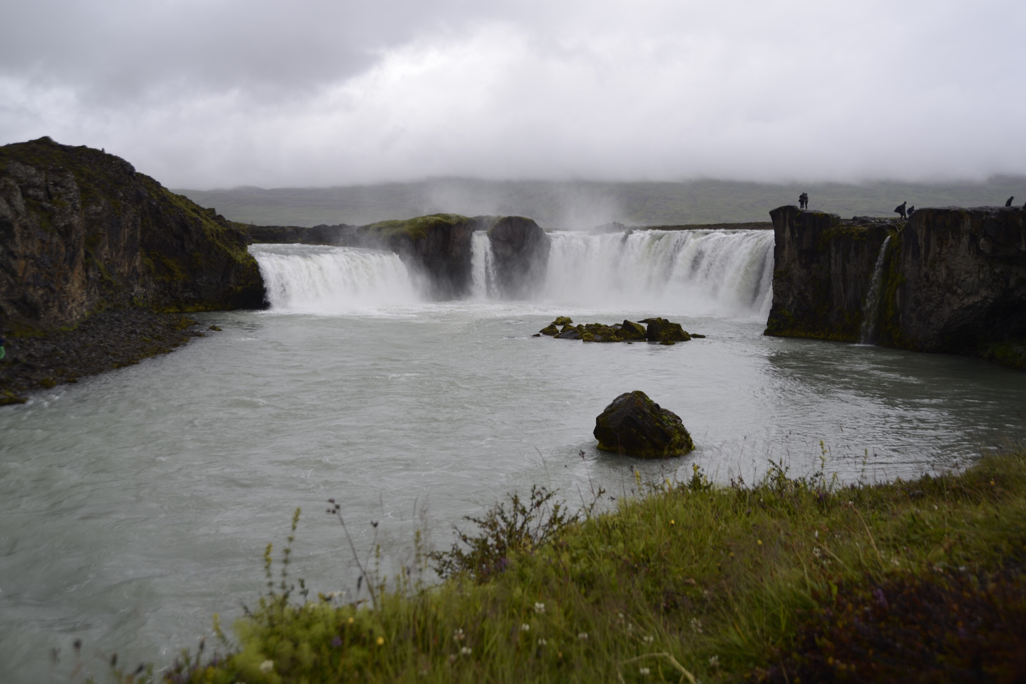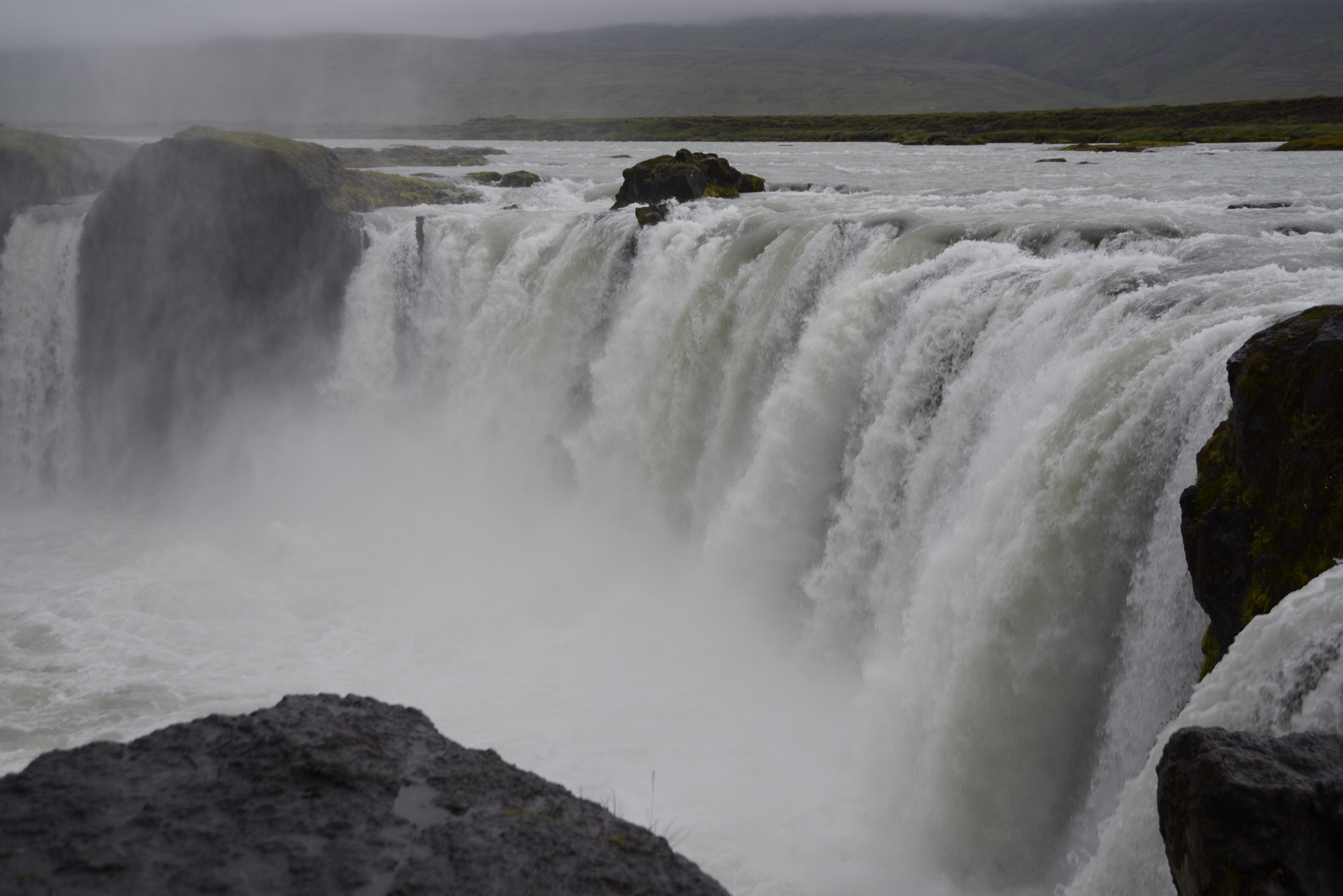 Heute regnet es seit dem Aufstehen. Dennoch sind wir zum Godafoss gefahren. Dort angekommen hat es kurzzeitig gegraupelt und es hat uns nicht gehindert mit Regenklamotten ausgestattet loszuziehen. Denn wie sagt man „es gibt kein schlechtes Wetter sondern nur schlechte Kleidung“.