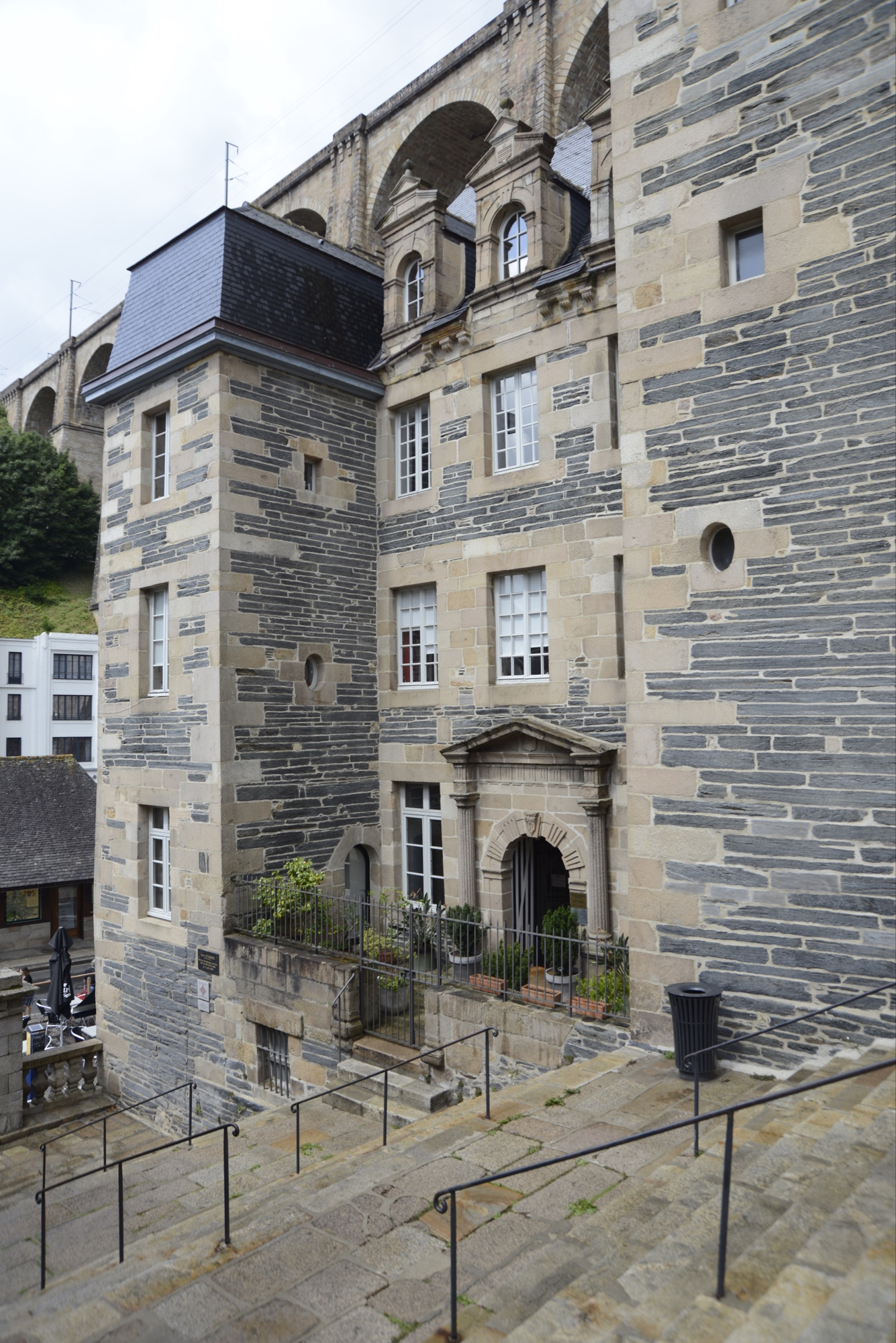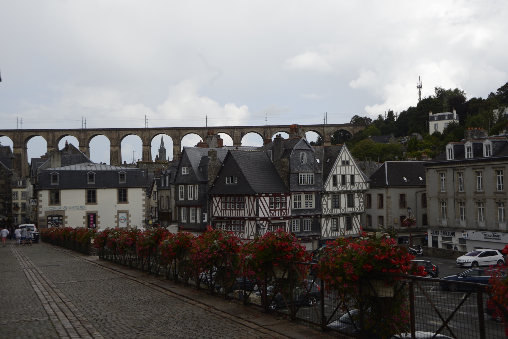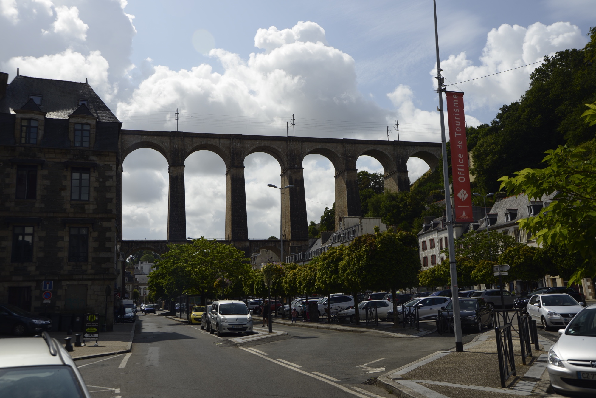 Über der Stadt ist ein Viadukt über das man zu Fuß gehen kann und darüber liegt die Zugtrasse nach Brest. Erbaut Zwischen 1861 und 1864 – 292 m lang mit 14 Bögen und 58 m hoch.