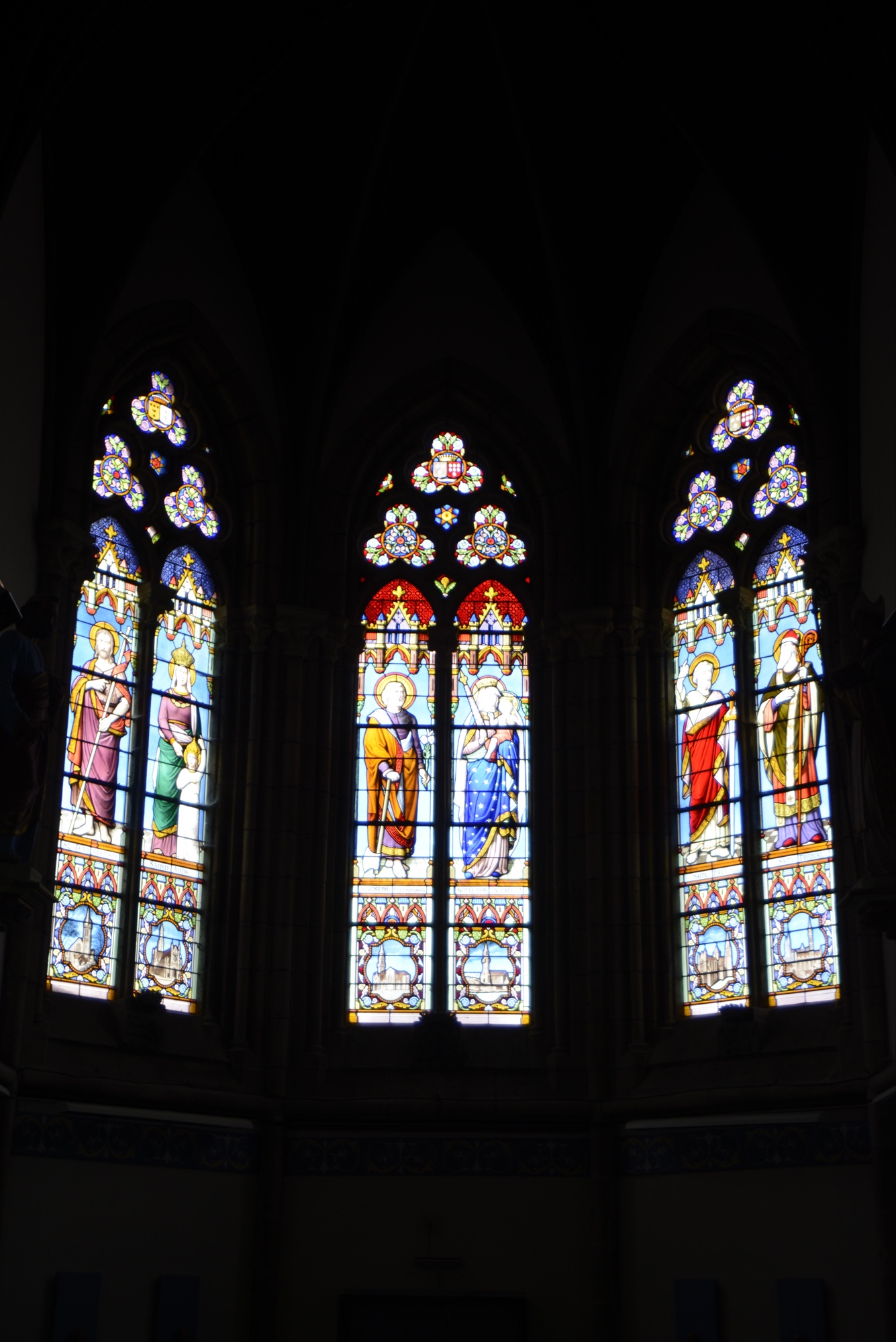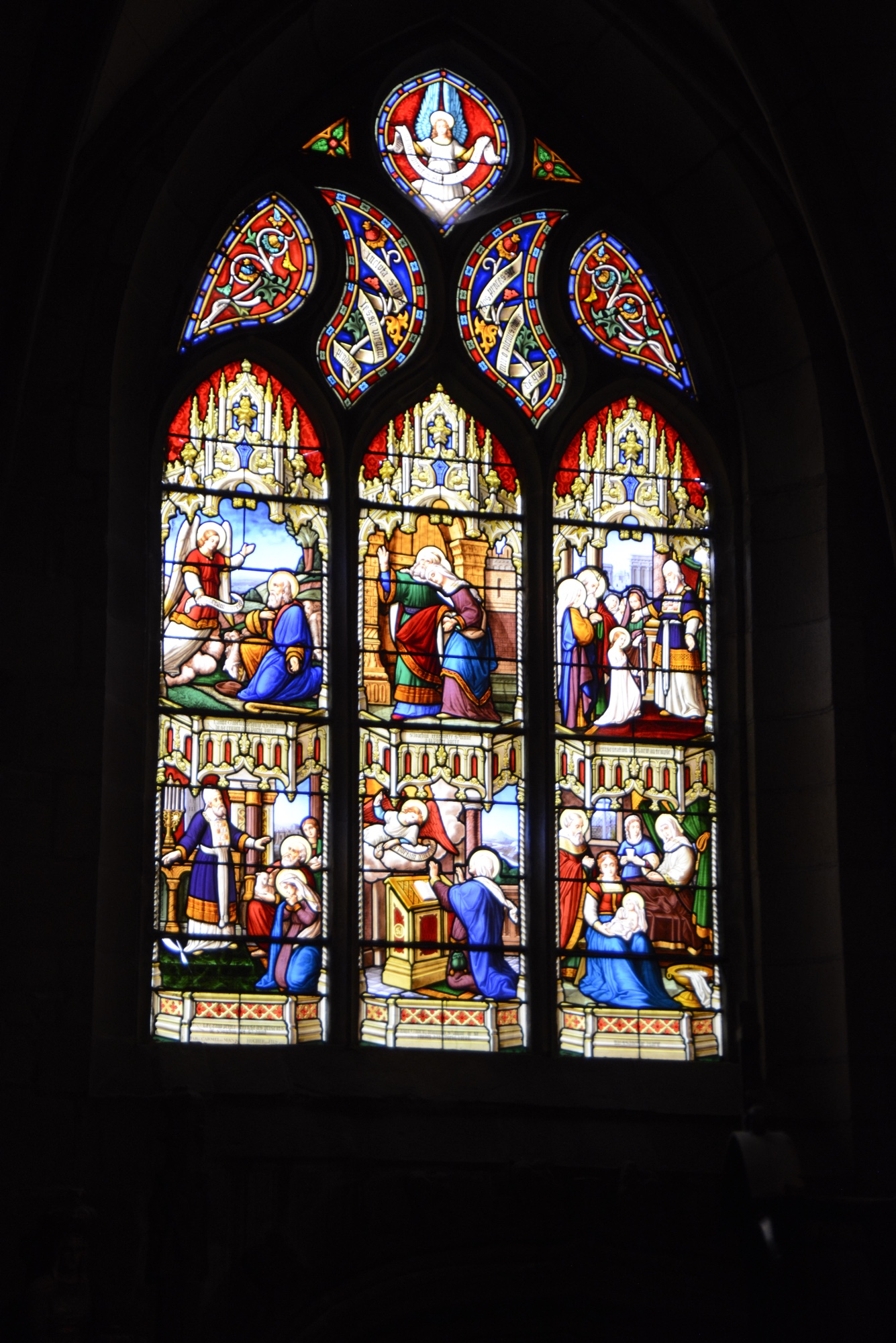 Die Fenster sind sehr bunt gestaltet.