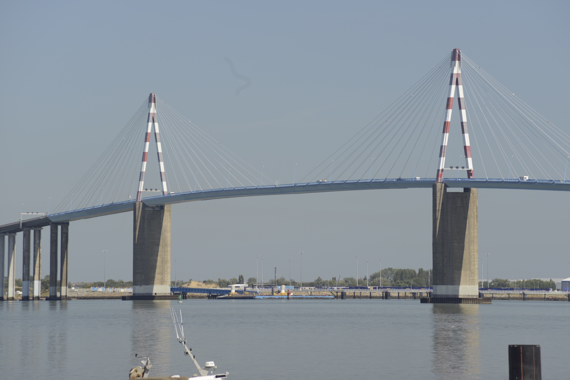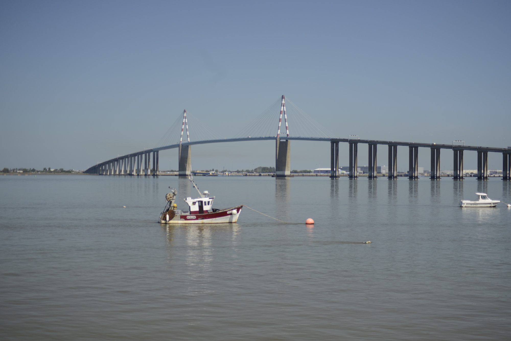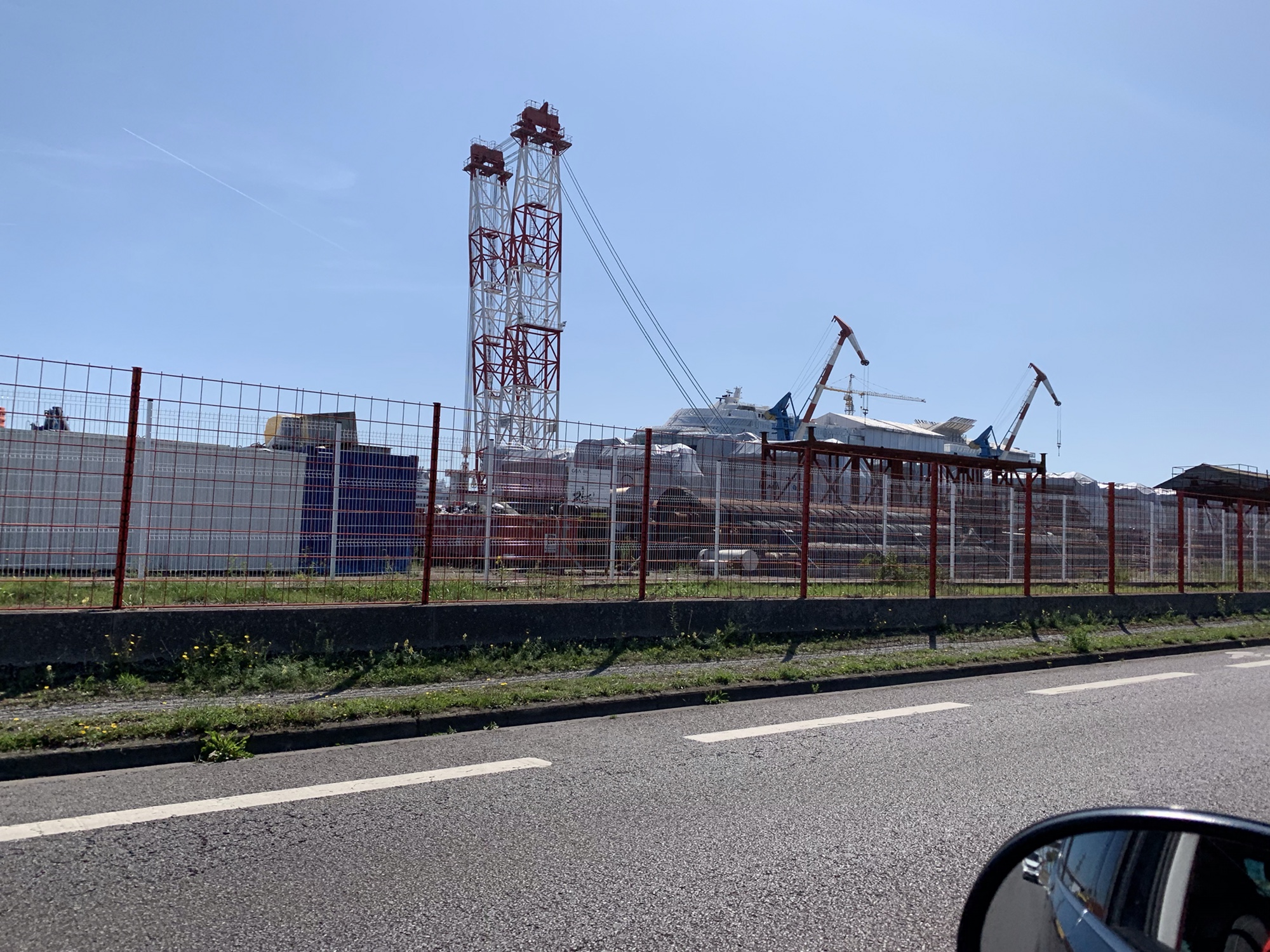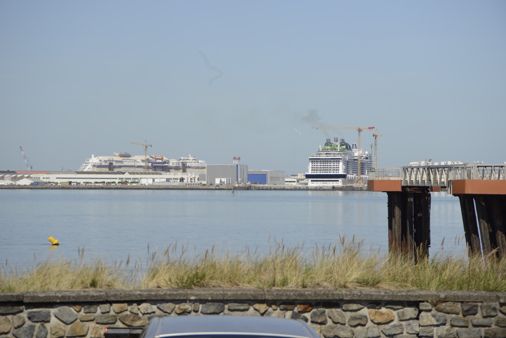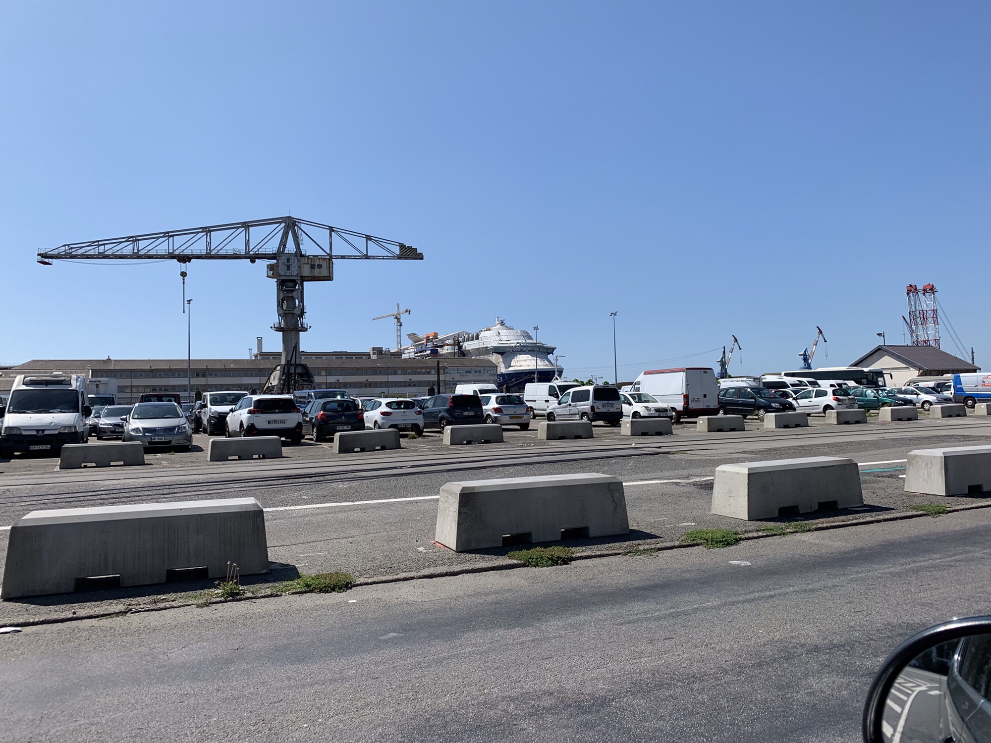 Die Fahrt führte uns nach Sant-Nazaire. Dort über die große Brücke, die die Loire-Mündung überspannt und einen kurzen Abstecher durch den Hafen.