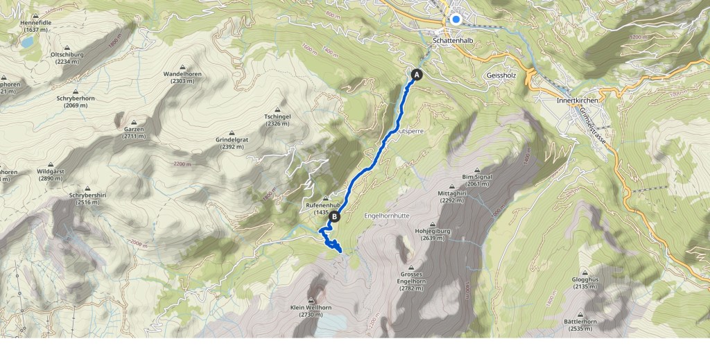 Anschließend geht es zu Fuß wieder bergab bis zur Bushaltestelle Kaltenbrunn. Von dort mit dem Bus und zwischenzeitlich hat es zu regnen begonnen zurück nach Meiringen. Es war eine wunderschöne Wanderung