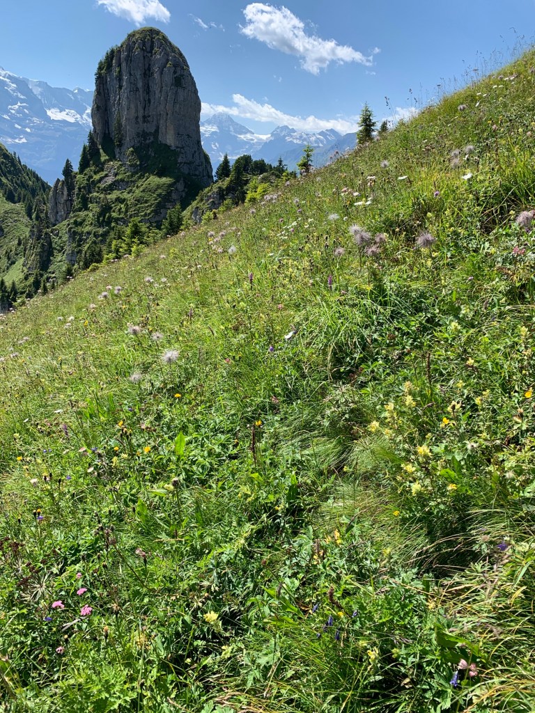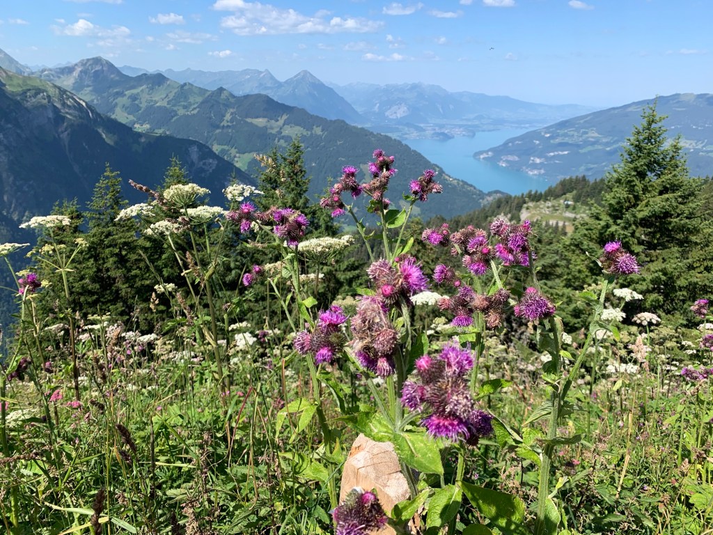 Zu Fuß geht es nun auf die Schynigeplatte (1,5 Std.). Teils durch Wald und immer eine schöne Aussicht parat.