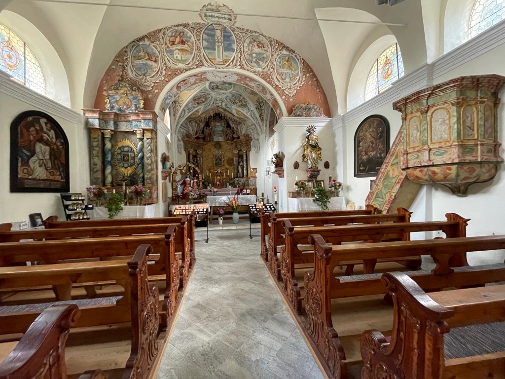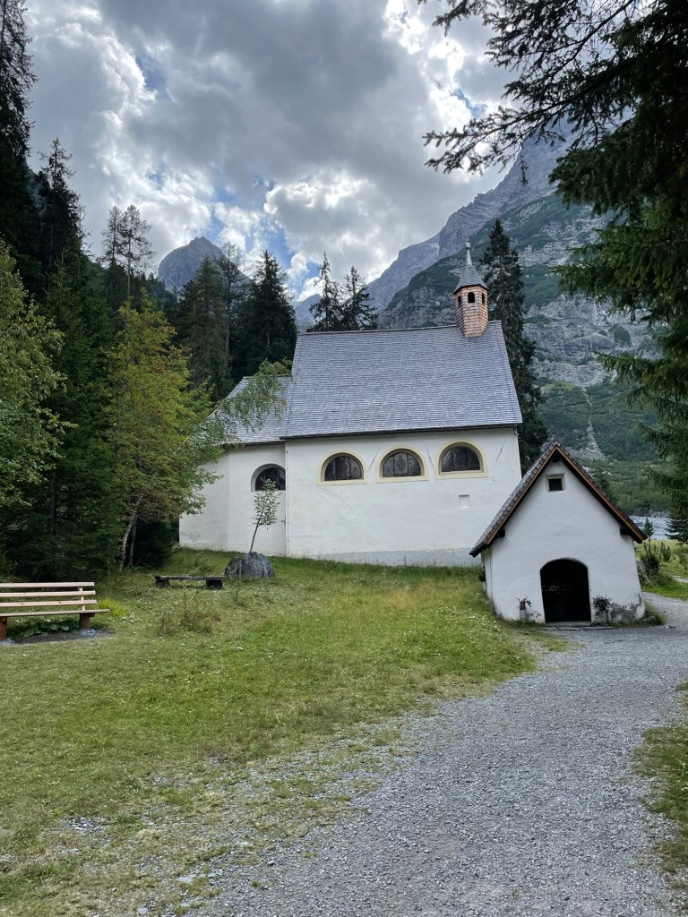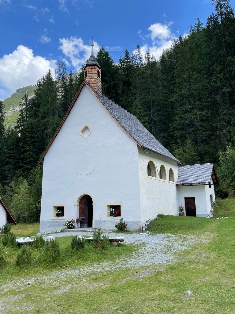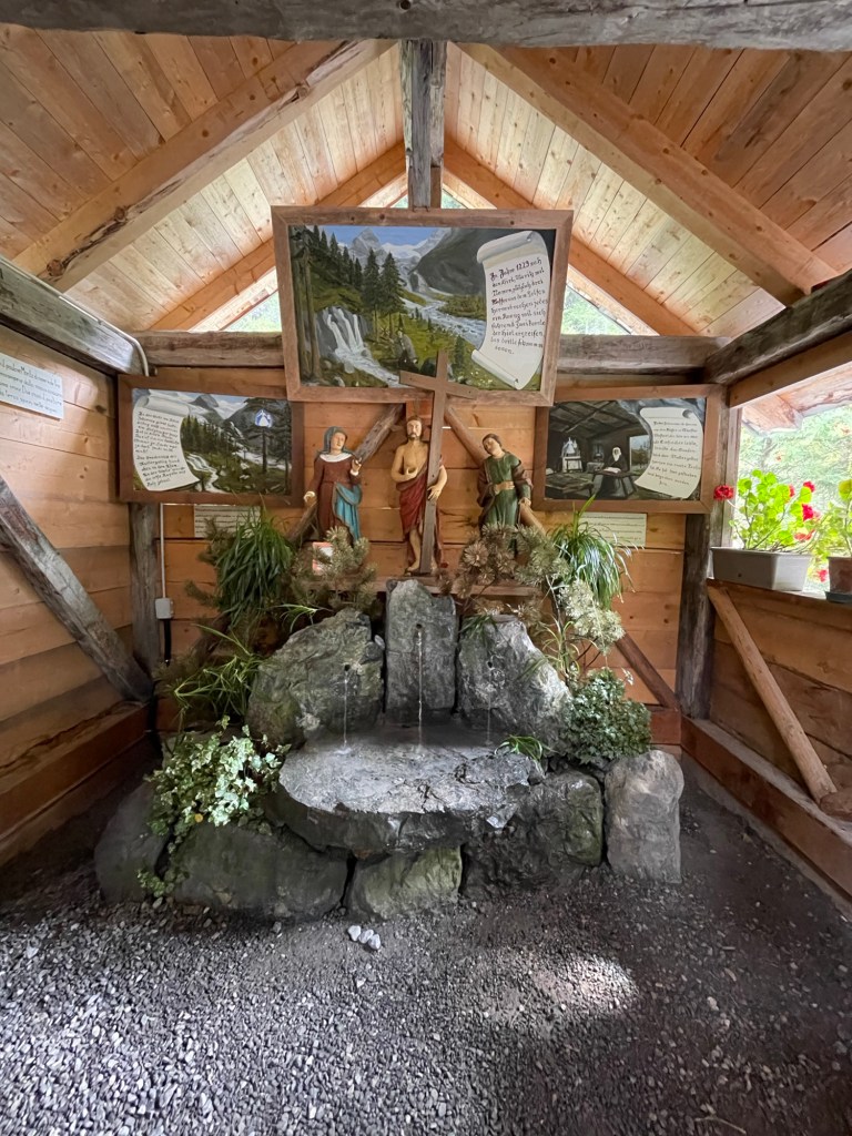 Es handelt sich dabei um das Kirchlein zu den Hl. Drei Brunnen. Die Legende erzählt, dass im 13. Jahrhundert der Hirte Moritz an dieser Stelle aus dem Felsen drei Rinnsale brechen sah. Jedes davon trug ein Kreuz mit sich: Zwei der Kreuze konnte er erwischen, das dritte wurde weggeschwemmt.