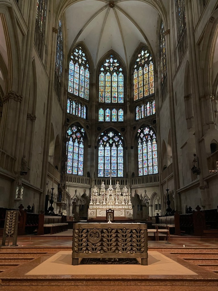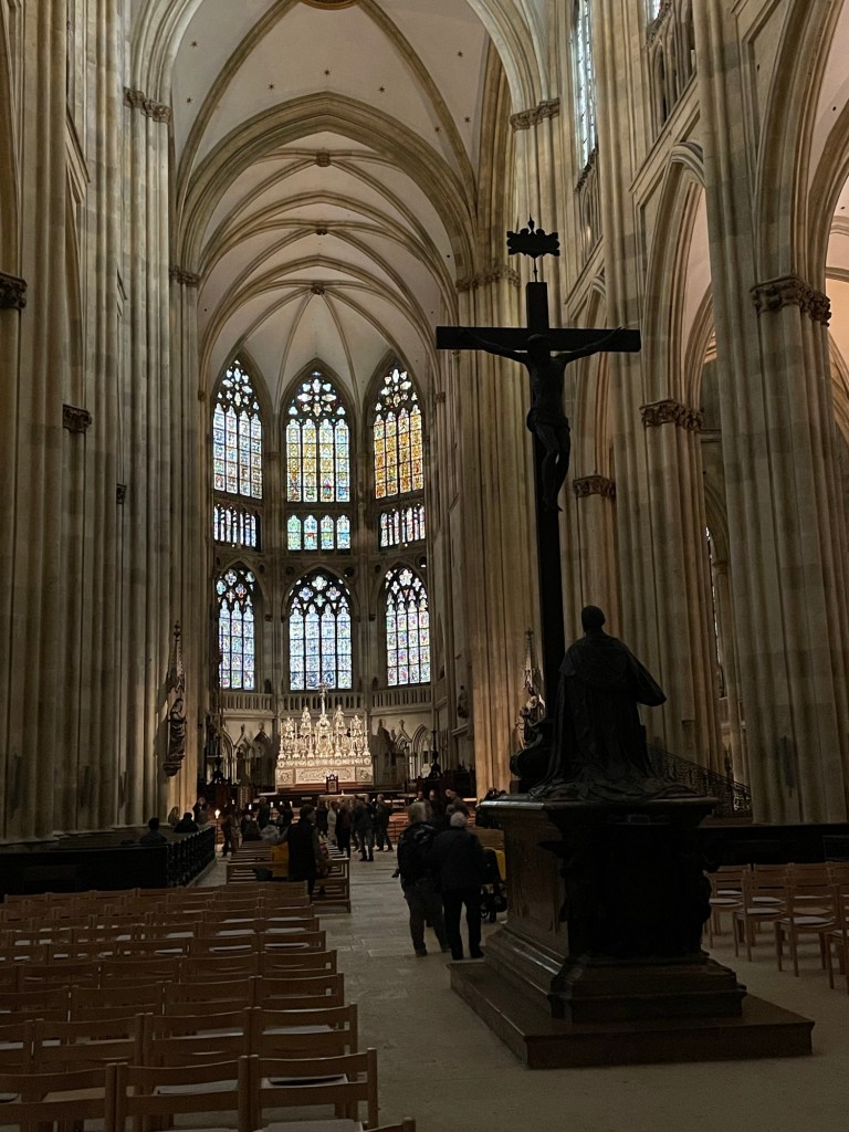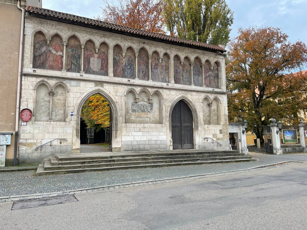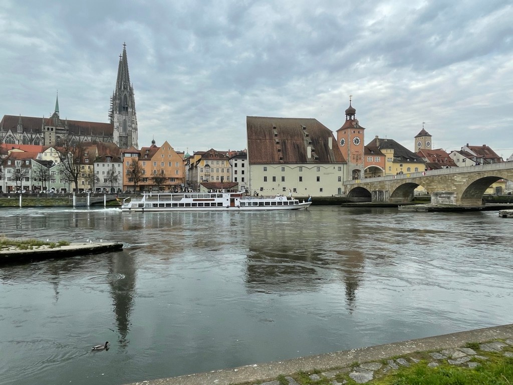 Regensburger Dom und rechter Hand die Steinerne BrückeEin Teil des fürstlichen Parks. Hier erfolgt schon der Aufbau für den Weihnachtsmarkt. Eingangsportal zur St. Emmeram-Kapelle Regensburger DomAltar mit wundervollen FensternOriginal Römermauer vom römischen Kastell. Integriert in einem Parkhaus, um es auch der Nachwelt zu zeigen welche Baumeister die Römer waren.