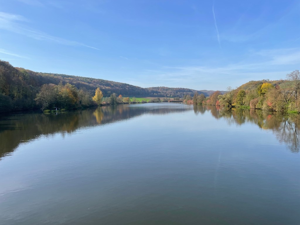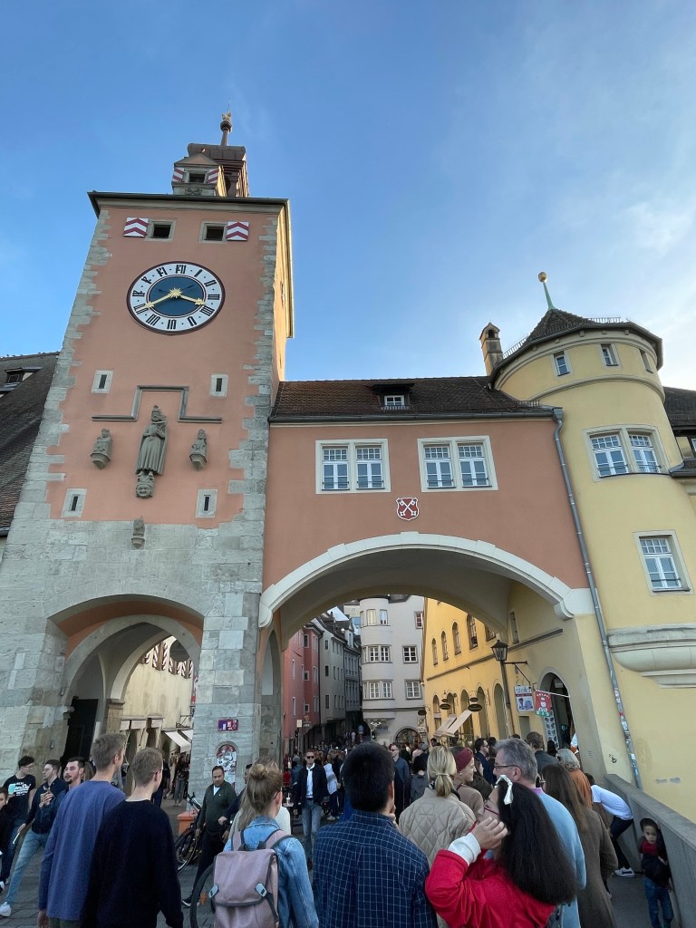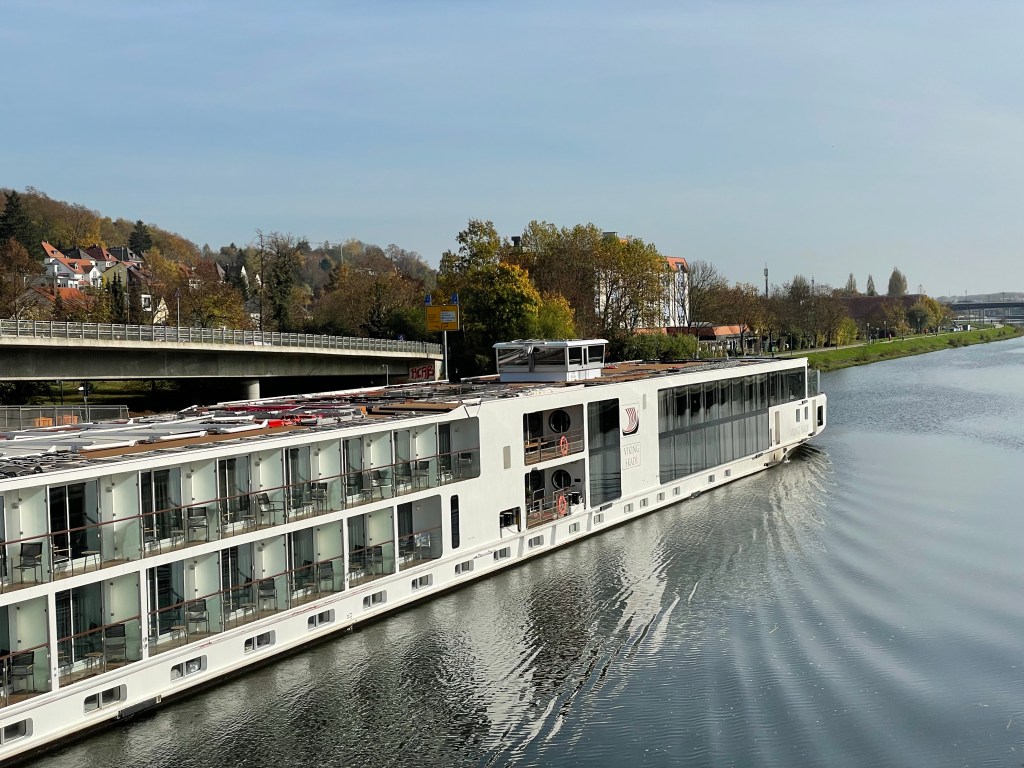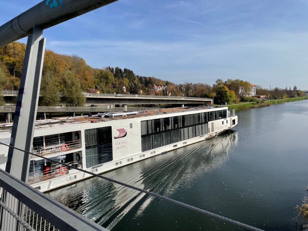 Gerade eine Flussschifffahrt unter der Brücke hindurch.