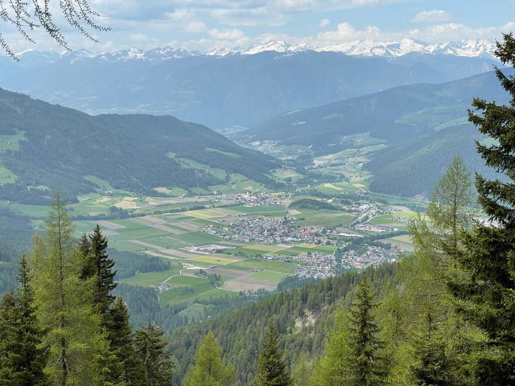 links hinten sieht man den Kronplatz noch mit einigen Restschneefeldern.
