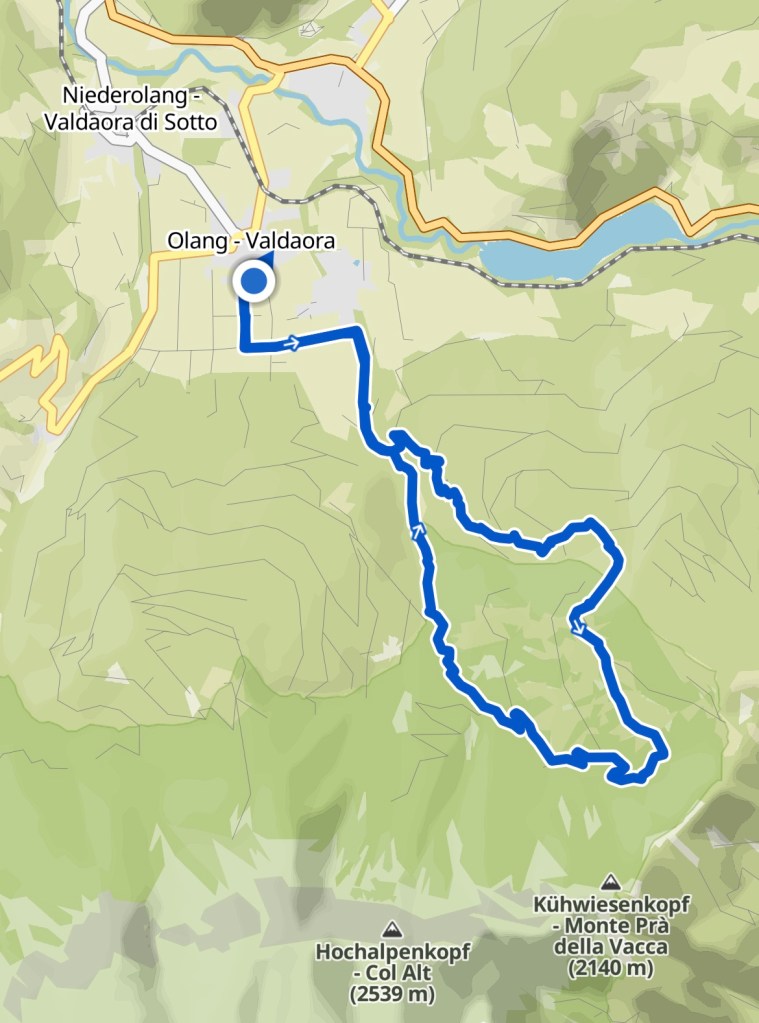 Zum Einstieg in die Wanderwoche ist der Start in Olang direkt erfolgt. Nach kurzer Durchsicht der schon offenen Almen (teils erfolgt die Öffnung Mitte Juni als auch Ruhetag) haben wir uns für die Bruns Alm entschieden. Also etwas zu Trinken, Obst und Müsliriegel eingepackt und los geht’s.