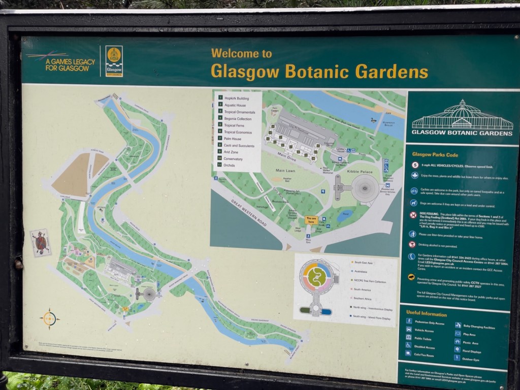 Nach dem Frühstück geht‘s zum geparkten Auto durch den Botanischen Garten von Glasgow. Dieser ist öffentlich zugänglich und kostenlos.
