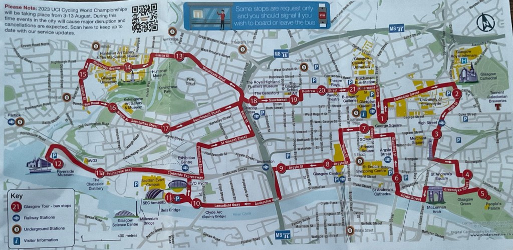 Heute geht’s mit der ‚Hopp on Hopp Off Tour‘ Kreuz und quer durch Glasgow, um die Sehenswürdigkeiten zu erkunden.