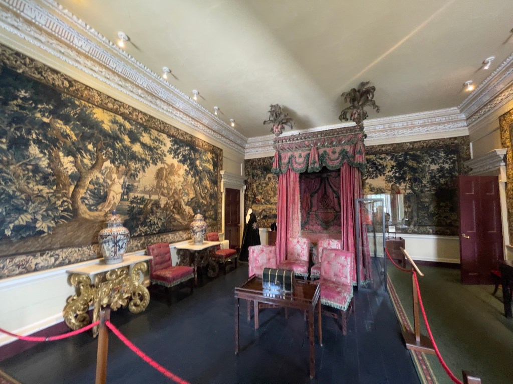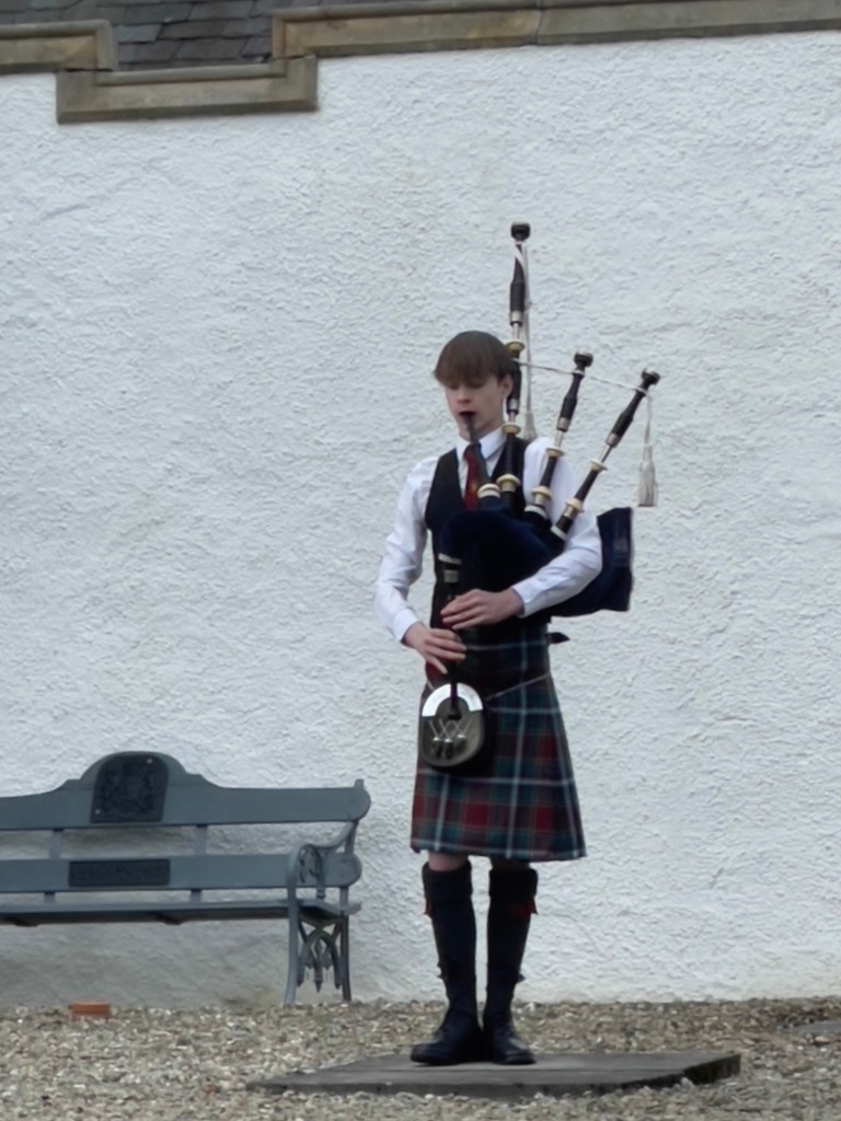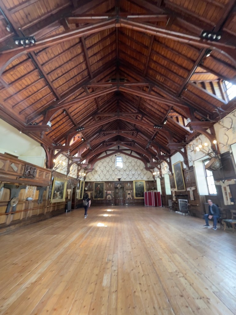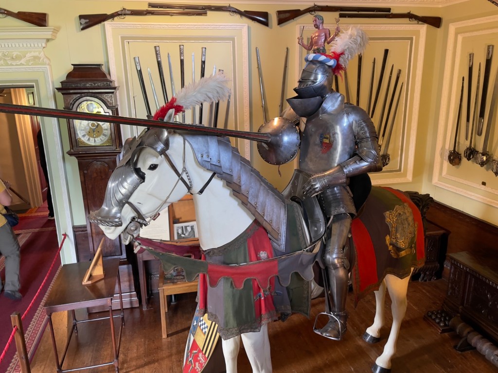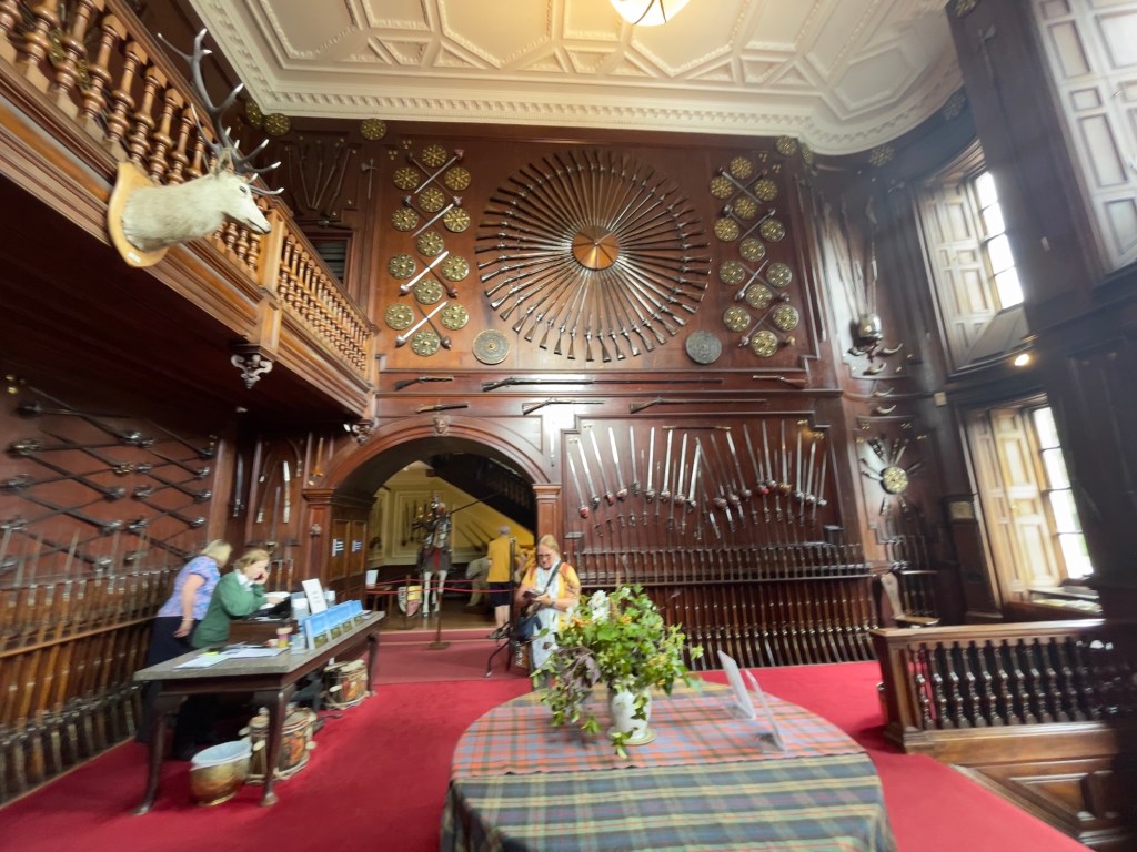 Es ist der Sitz der Grafen und Herzögen von Atholl und die Heimat der letzten Privatarmee Europas, der Atholl Highlander.Um 12 Uhr und zur jeden vollen Stunde bis 15 Uhr spielt einer den Dudelsack.Die Eingangshalle geschmückt mit lauter Waffen, die die Highlander je benutzt haben sollen.Über die Treppen gelangt man in die oberen Räumlichkeiten Überall Ahnenbilder der bisherigen Duke‘sIm Flur ist der Besucher:in umgeben von GeweihenTeeraum SpeiseraumIm Speiseraum aufgestelltes ServicesSchlafraum für die EhefrauDazu gehörendes BadezimmerÜber eine weitere Treppe gelangen wir in den obersten bewohnten StockEin mit Intarsien versehener TischIm Arbeitszimmer wundervolle Möbel (Sekretär)Der Tempel aus Holz. Nachempfunden eines römischen Tempels. Dieser stellt eine Besonderheit dar …es diente zur Aufbewahrung von Münzen. Somit ein Vorläufer der heutigen SpardoseAnkleidezimmer mit einem Schrank aus Italien. Die Einlagen auf der Oberfläche sind aus PerlmuttDas Schlafzimmer des HausherrenDie Verzierung in der Mitte der Rückwand ist die älteste gefundene Schnitzerei aus den früheren Erbauzeiten.Aufenthaltsraum mit tollen Ausblick auf das Landgut mit einer sehr reich verzierten StuckdeckeEin weiteres Schlafzimmer mit italienischen WandteppichenDie Pfauenfedern auf jeder Ecke des Baldachins zeugt von der sehr guten Zeugungsfähigkeit des damaligen Duke‘s. Er zeugte 8 Kinder.Ein Ausschnitte aus dem Spielzimmer. Es scheint damals ich schon eine Art „Mensch ärgere dich nicht“ gegeben zu habenIm Erdgeschoss steht auch noch ein RitterKopfseite des BallsaalsBallsaal