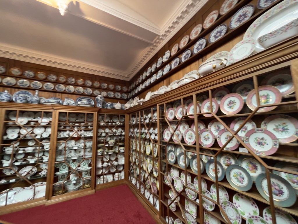 Zum Schluss kommt der Raum, in dem das gesamte Geschirr aufbewahrt ist.Unter anderem ein doppeltes Services Meißner Porzellan Natürlich darf in keinem zu besichtigen Schloß ein Gift Shop fehlen