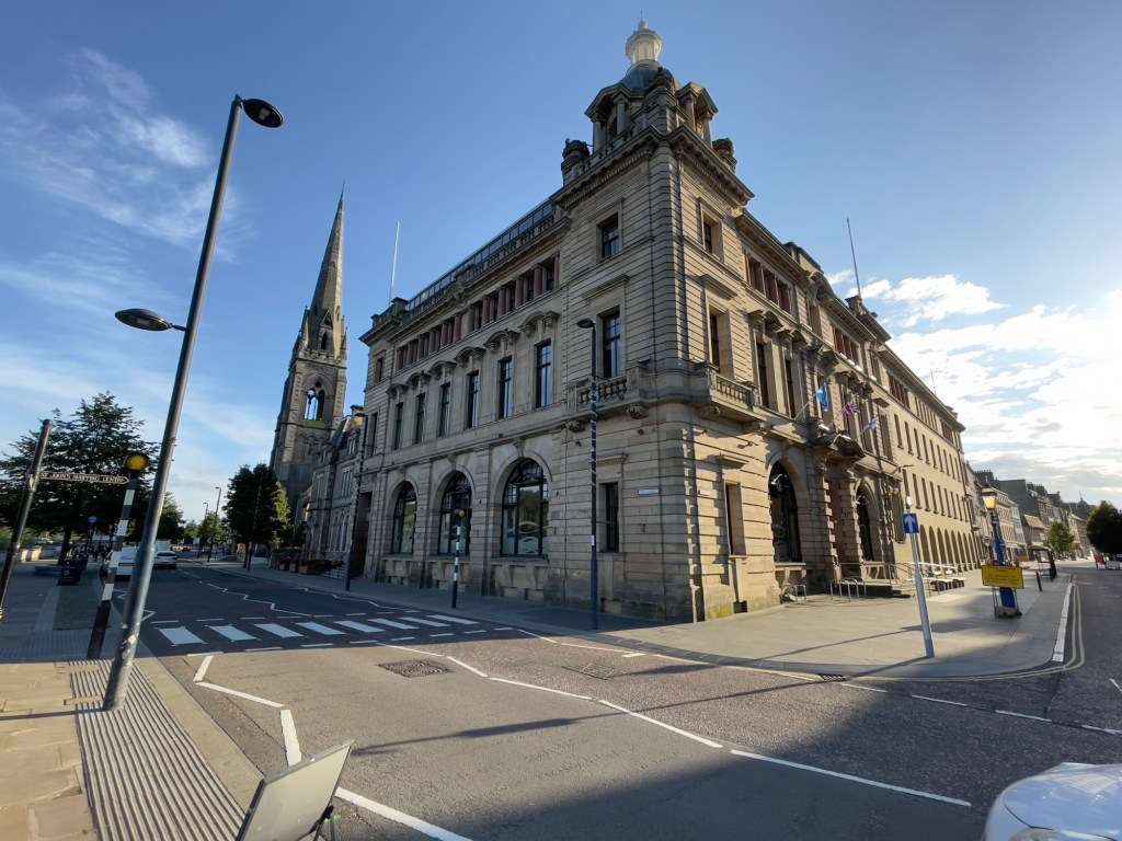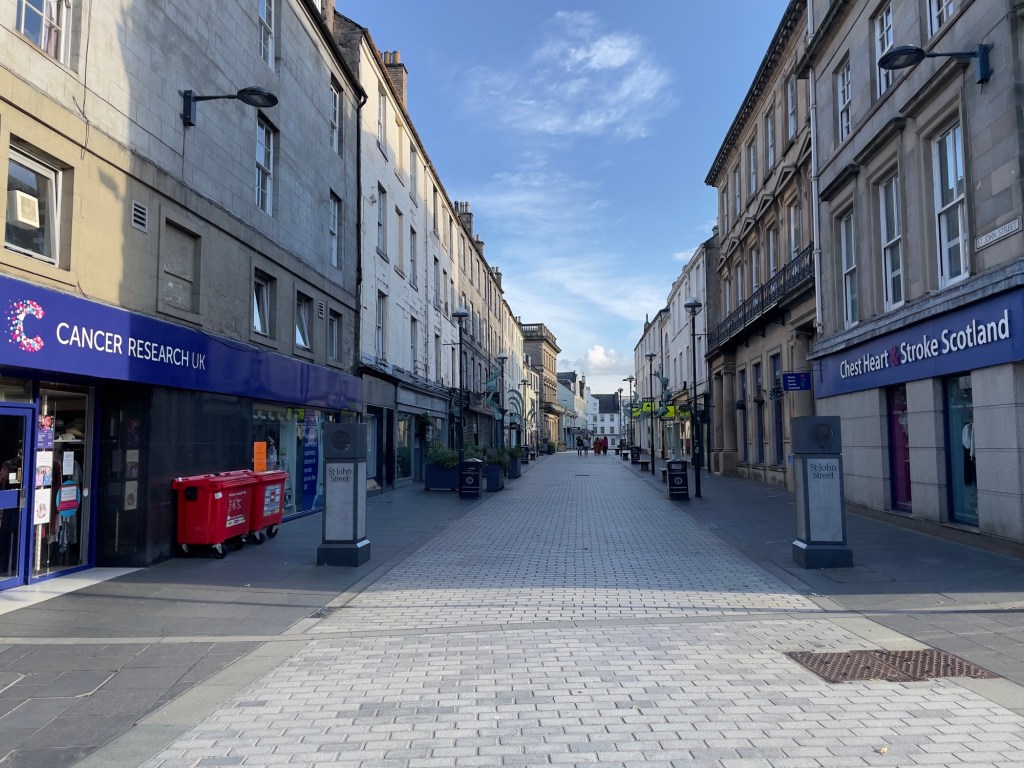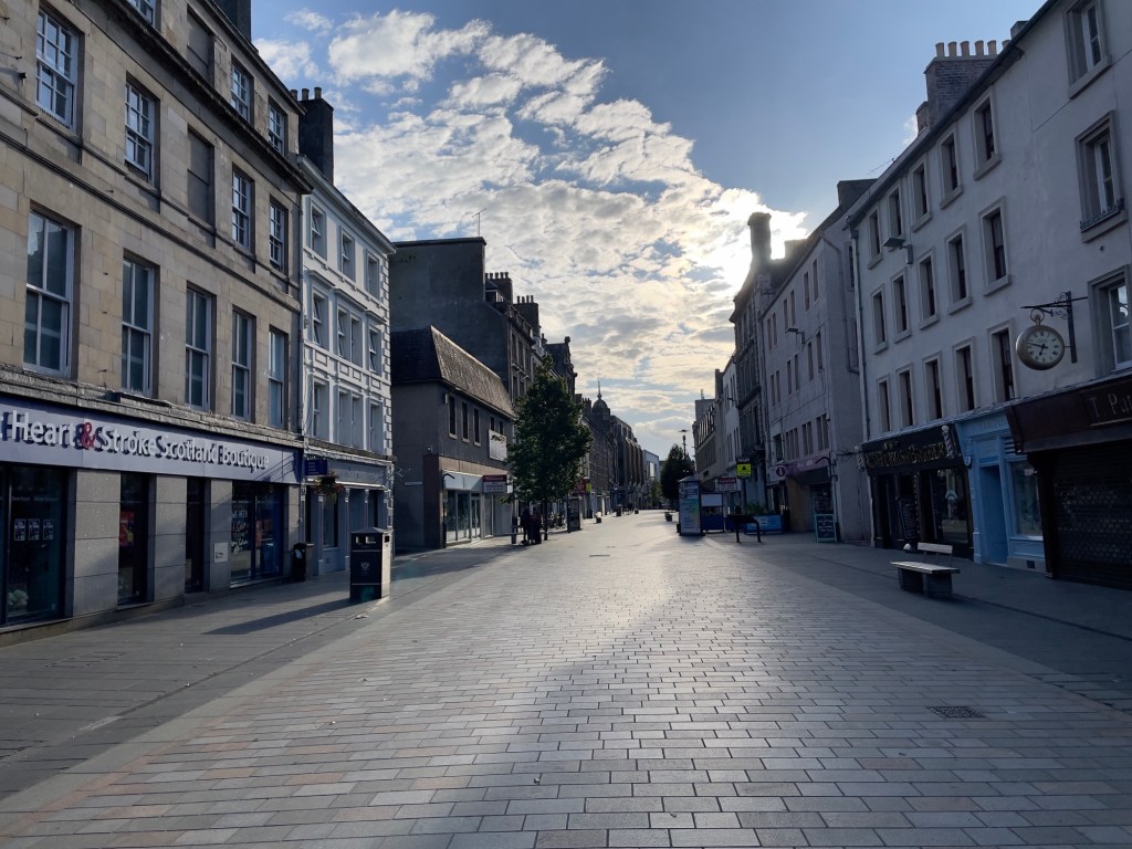 Blick in die leere Fußgängerzone In der anderen Richtung auch nichts losAm Ufer des River TaySonnenseite