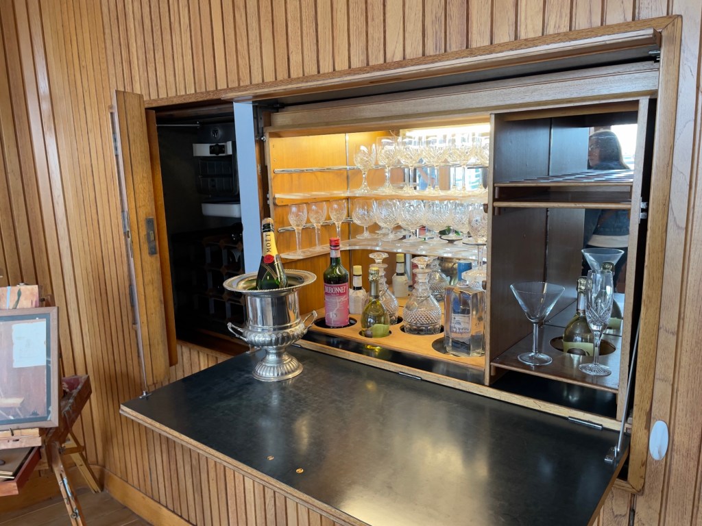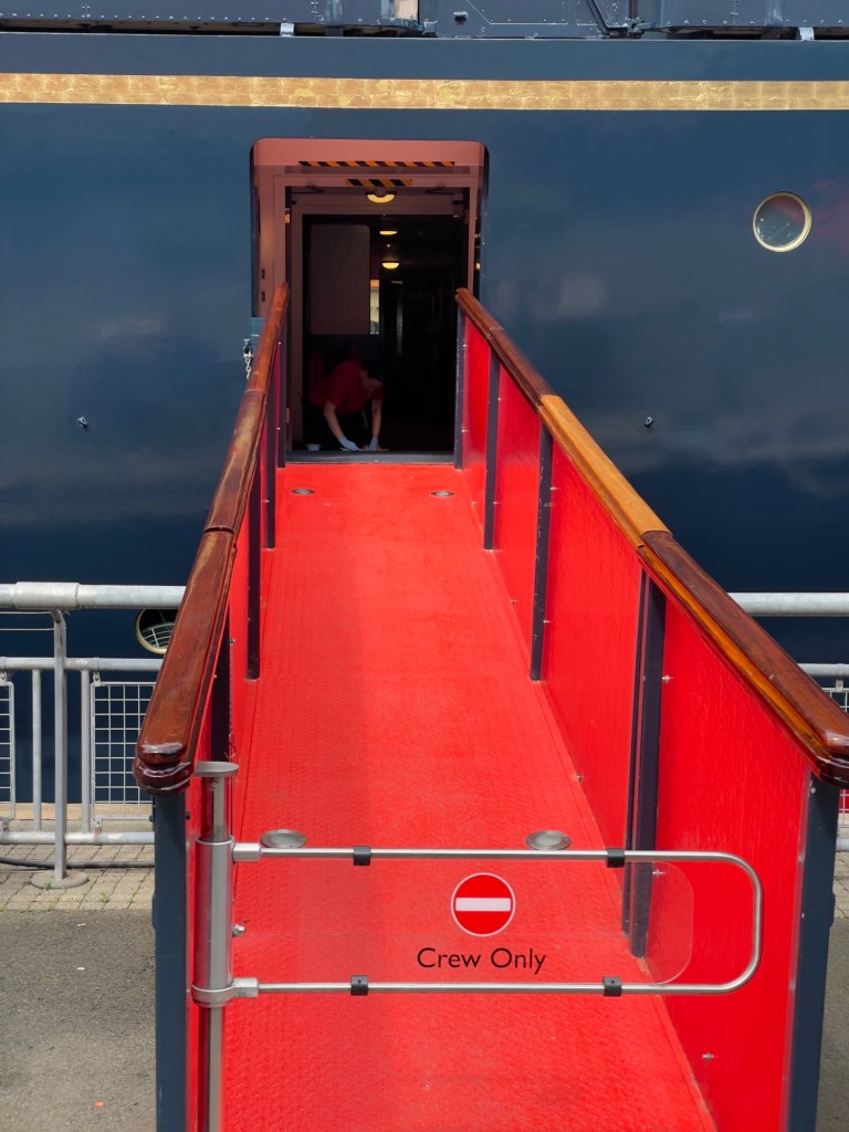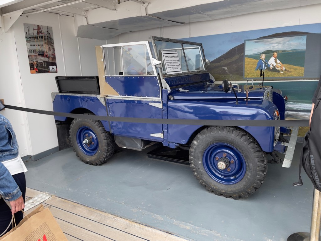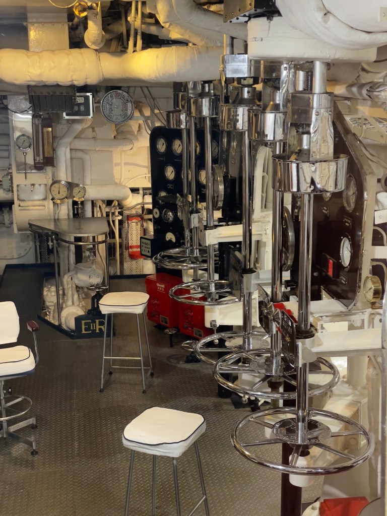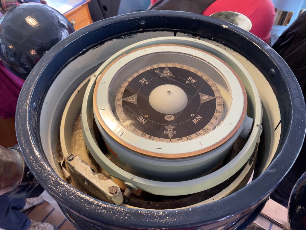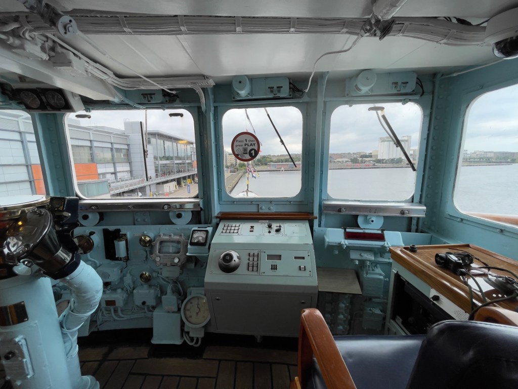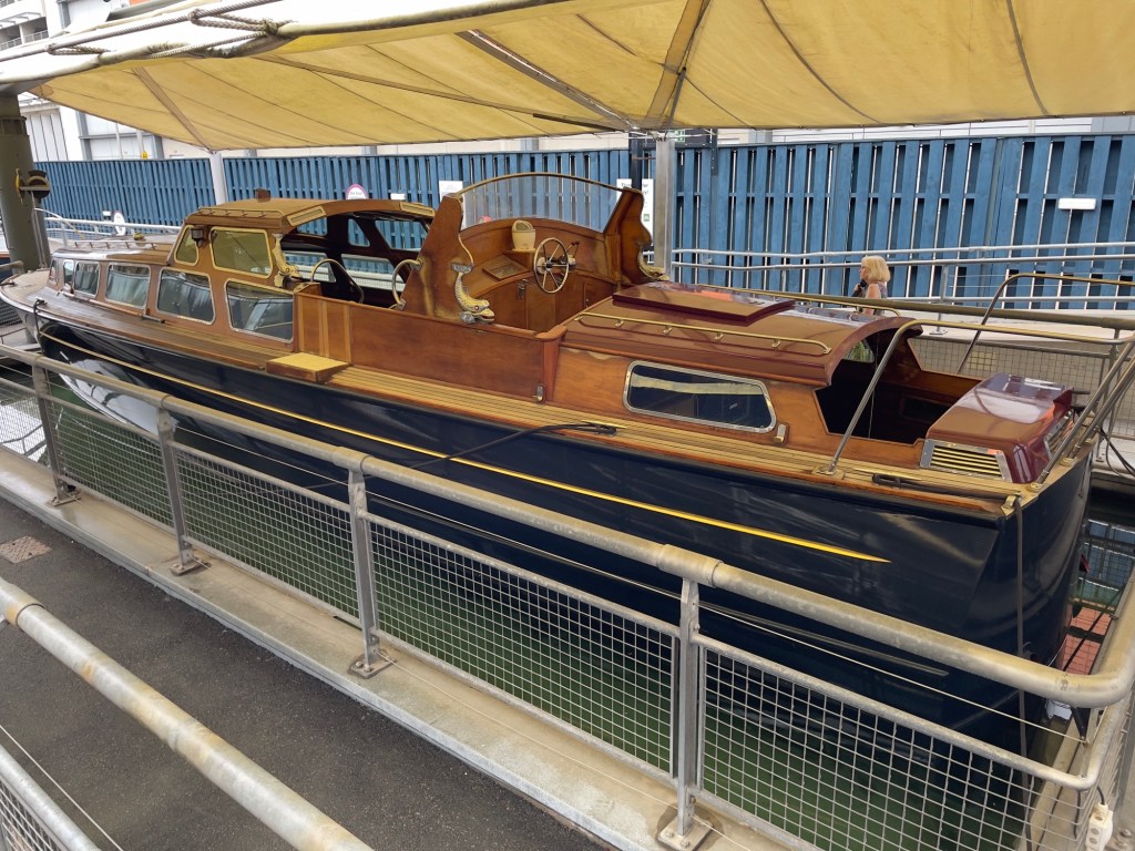 Das Ocean Terminal wird schon angekündigt.Zu erst mal dachten wir, dass man auch hier shoppen kann. Weit gefehlt – Leerstände und Geschäfte, die man nicht unbedingt braucht. Der Zugang befindet sich im 2.Obergeschoss und man wird erst mal durch die Geschichte in Bilder auf das Schiff aufmerksam gemacht.Lego lässt grüßen Bevor man aufs Schiff darf, sieht man schon den Bug.Der Zugang erfolgt über das 2.Obergeschoss und man gelangt auf die Brücke der Britannia.Brücke – der Stuhl ist nur für den AdmiralKreiselkompass Vor der Holzwand standen die Queen beim Einlaufen in den Hafen. Die kleine Holzwand ist dafür da, dass der Queen / den Damen beim Einlaufen in den Hafen die Röcke durch den Wind nicht hoch geweht werden kann.Hinter der Brücke befindet sich der Flaggenschrank.Blick in Richtung Heck des SchiffesBlick in die Kajüte des AdmiralEs musste früher immer der Land Rover der Queen mitgenommen werden. Danach kam der Rolls-Royce mit, allerdings mussten immer die Stoßstangen abmontiert werden, damit dieser in diese Position passte. Zum Schluss wurde kein Fahrzeug mitgenommen, sondern man hat auf die Fahrzeuge vor Ort am Ziel zurückgegriffen.Das Deck der königlichen Familie.Auf diesem Deck wurden auch offizielle Bilder aufgenommen.Die Planken bestehen aus 5 cm dicken Teakholz, die täglich mit Meerwasser gesäubert werden musste.Der Lieblingsraum der Queen und des Prinzen. Rechts hinter der Wand Spiele oder Plattenspieler Spieleschrankund links die Bar.