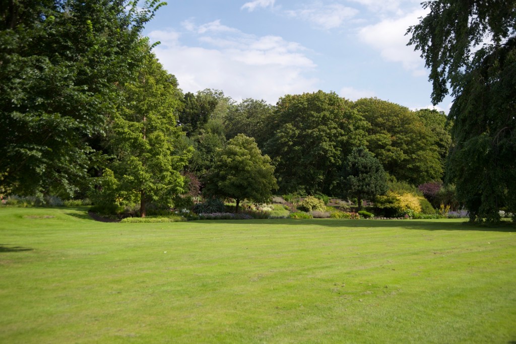 Vor offiziellen Anlässen wird das Gras so gemäht, dass ein sauberes Muster entsteht und kein Unkraut zusehen ist.