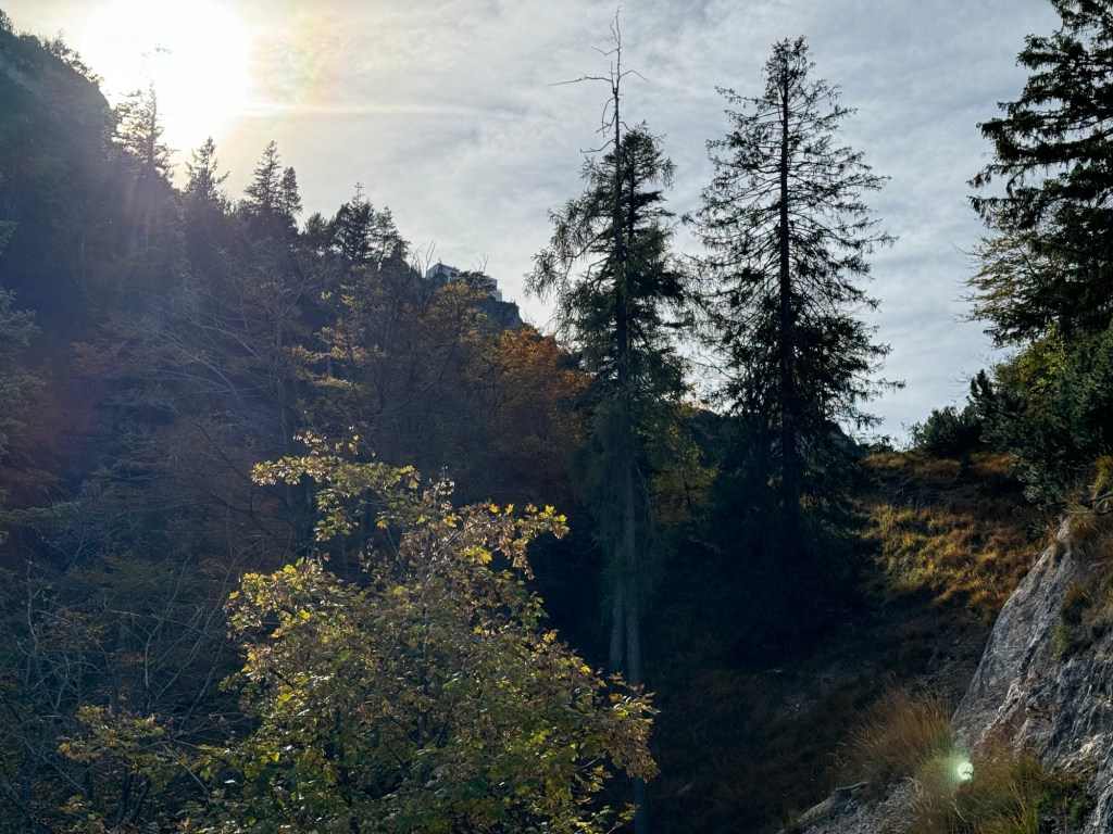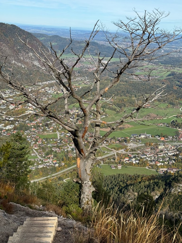 Dann führt der Weg zum Gipfelkreuz oder über einen breiteren Weg zur Bergstation Predigtstuhl.