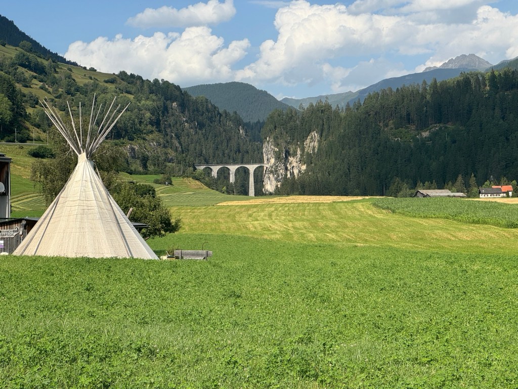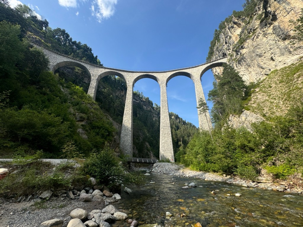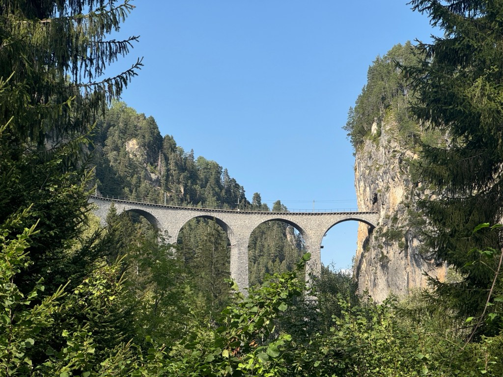 Nach der Autofahrt und Bezug des Quartiers erfolgt ein kleiner Spaziergang auf dem Wasserweg zum Landwasserviadukt.