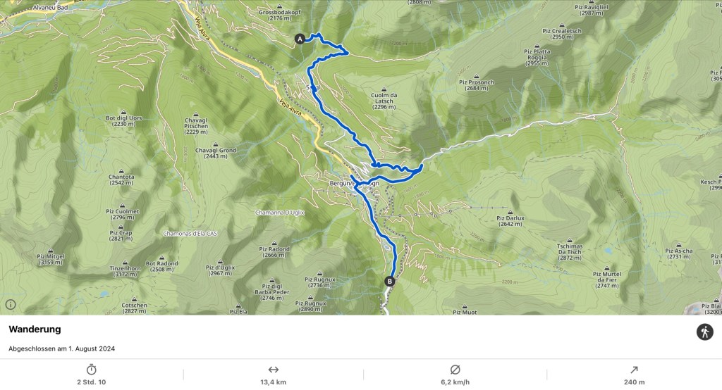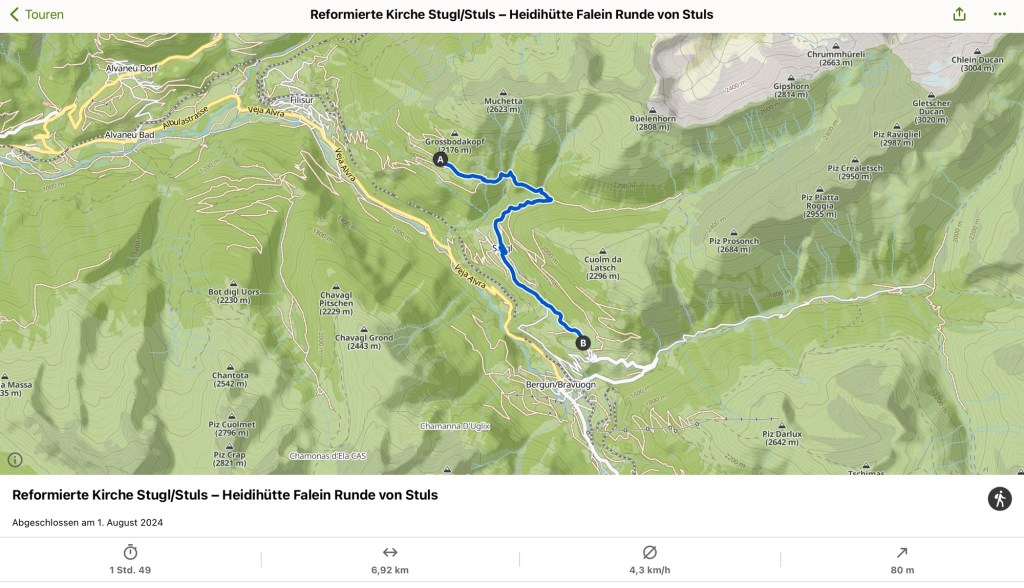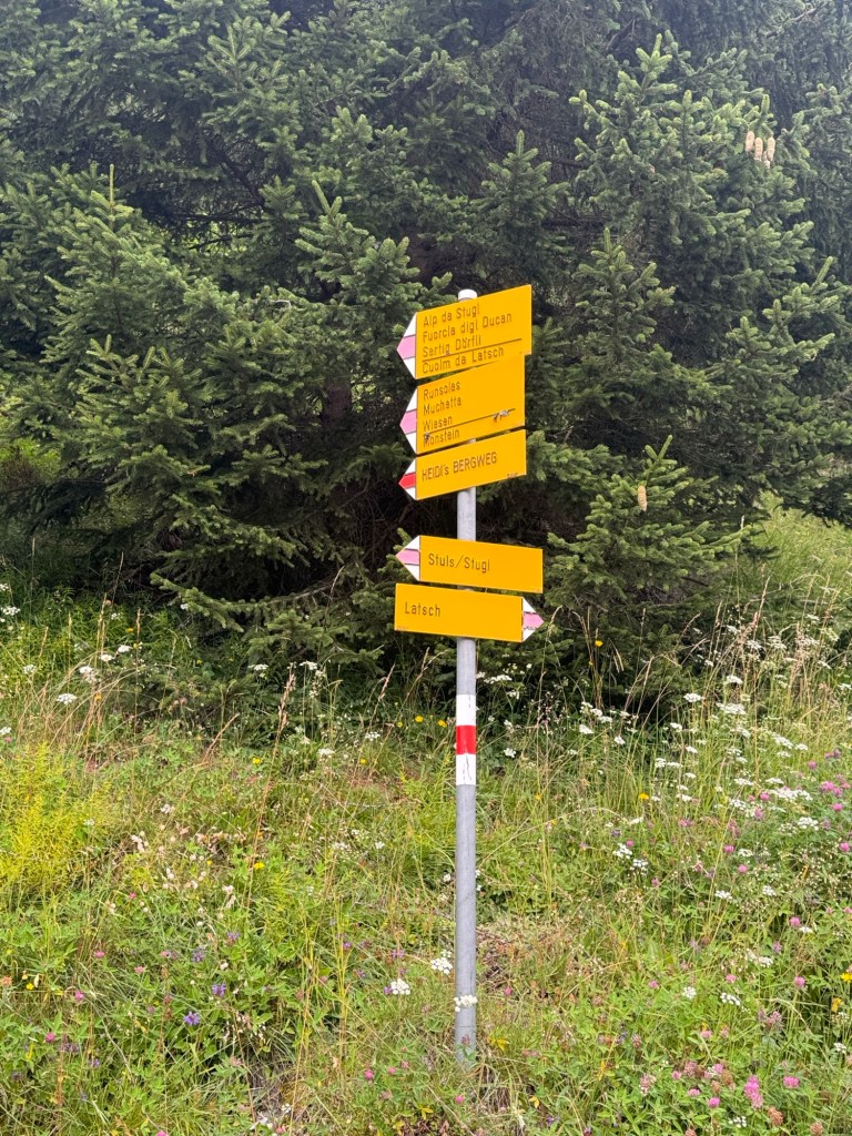 Heute geht’s auf den Heidi-Trail. Mit dem Auto nach Latsch und dann zu Fuß nach Stugl. Dort beginnt der Heidi-Trail mit einer Länge von 8,5 km und 390 Höhenmeter rauf und 400 wieder runter. Am Ende wieder zu Fuß nach Latsch.