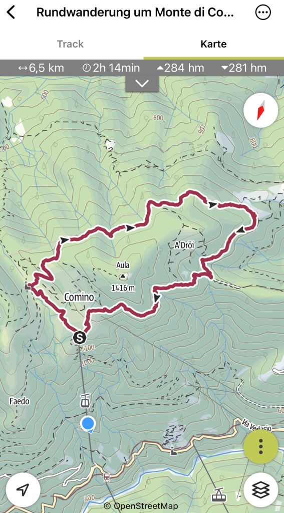 Bevor wir nach Glis-Brig aufbrechen wollen wir uns noch die Füße vertreten. Dies haben wir am Monte Camino absolviert. Von der Talstation Verdasio mit der Gondel hinauf gefahren und an einem Höhenweg um den Monte Camino gewandert.