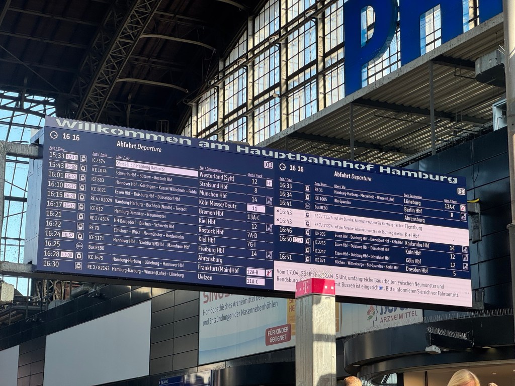 Diesmal geht es mit der Deutschen Bahn von Augsburg nach Hamburg. Die Reise verläuft bis kurz vor Hannover nicht schlecht. Doch dann schlägt eine defekte Weiche zu, so dass wir mit gut 60 Minuten später in Hannover ankommen und dies sich bis Hamburg HBF fortsetzt.