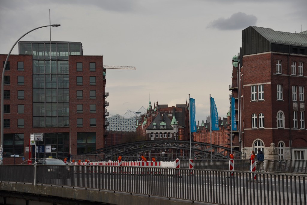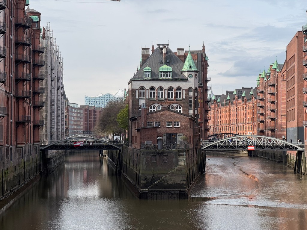 Mit bewölktem Wetter und ab und zu etwas Regen geht’s in die Speicherstadt.