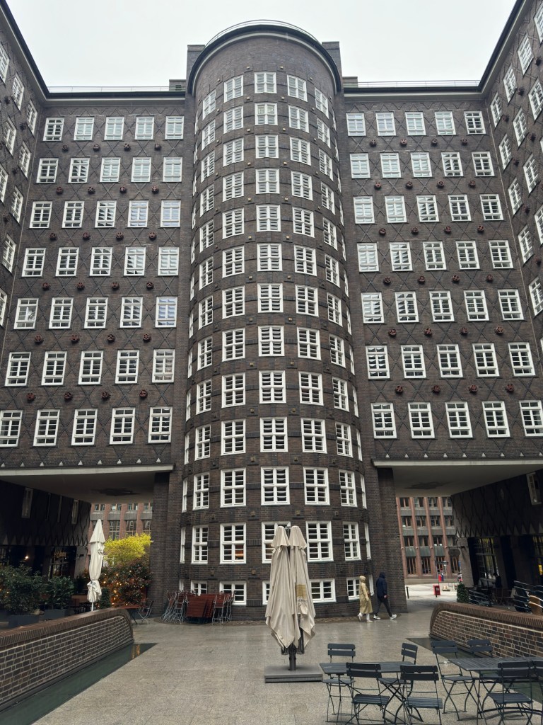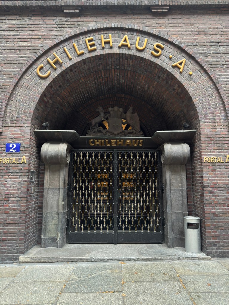 Dies befindet sich im Kontorviertel von Hamburg. Erbaut in 1922 bis 1924 in Form eines Shciffes. Am Kopf das Wahrzeichen von Chile – einen Kondor.