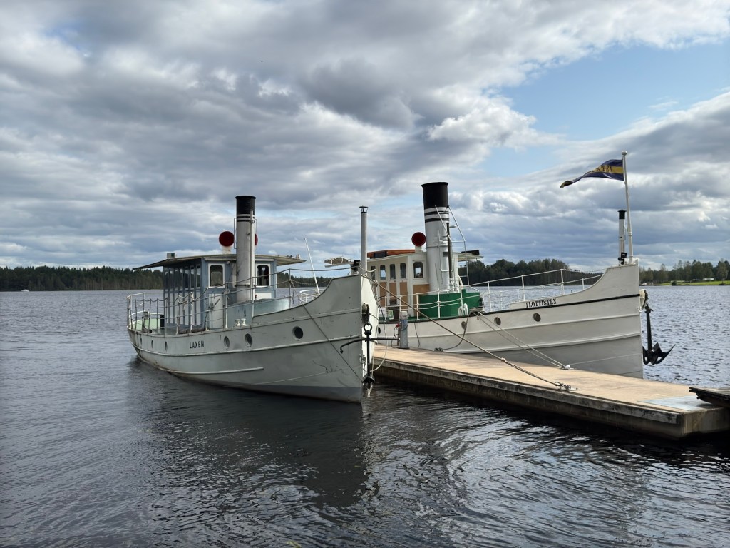 Noch unser Häuschen in Sunne.Mora – am Mora Strand am SiljanIn der Stadt war heute ein Fahrradrennen und somit was los.Das linke Schiff (Laxen) war früher für den Transport von Holzstämmen zuständig. Der heutige Strand war früher komplett mit Holzstämmen voll, die auf den Abtransport warteten.