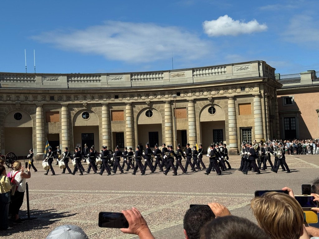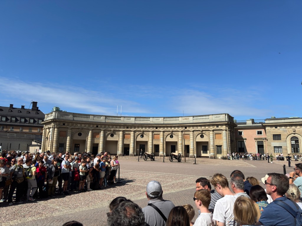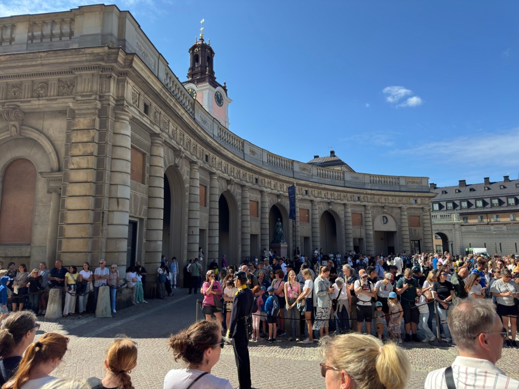 Menschenmassen stellen sich an um die Wachablösung inkl. Musikkorps zu sehen und zu hören.