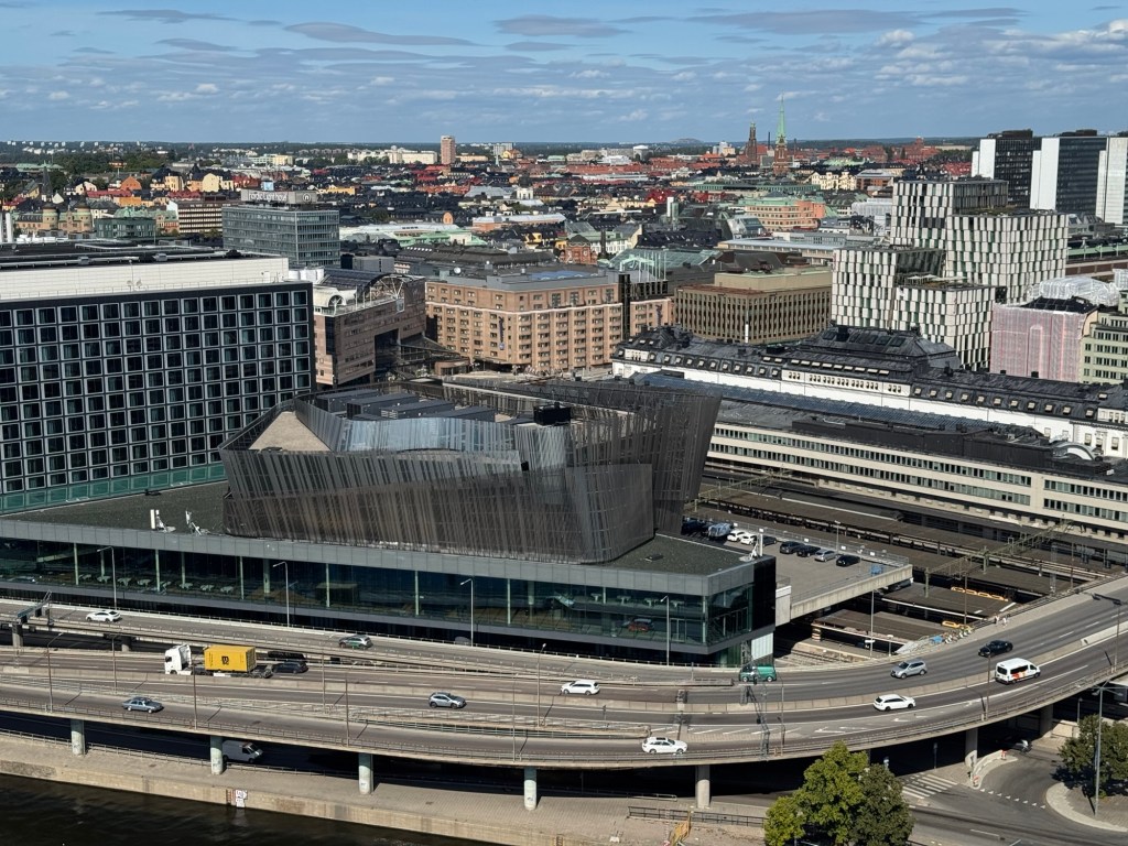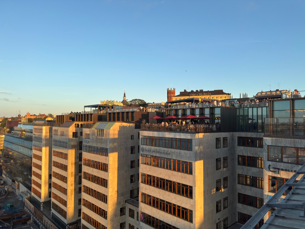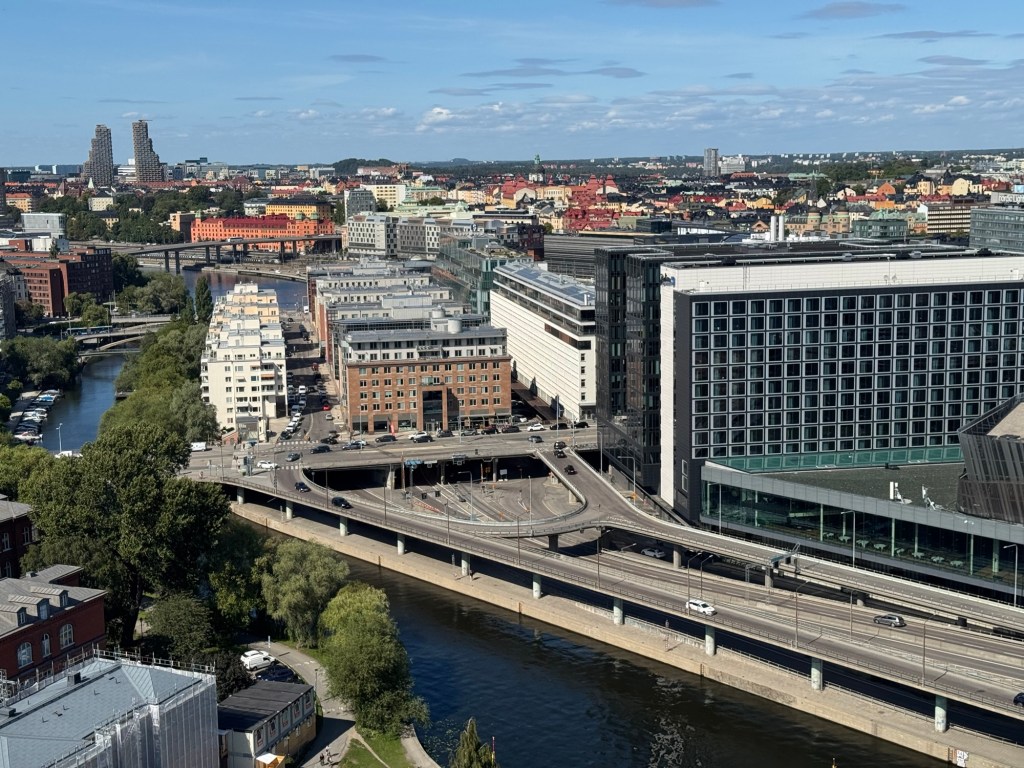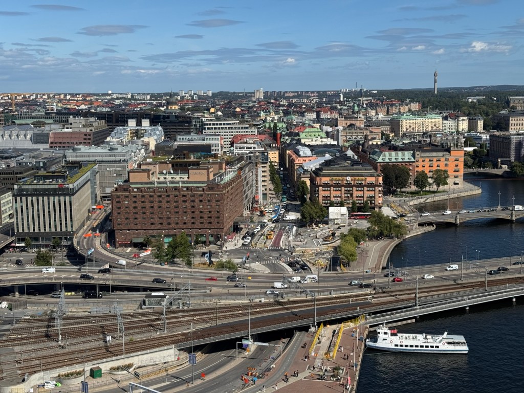 Oben angekommen eine wunderbare Aussicht über Stockholms City.
