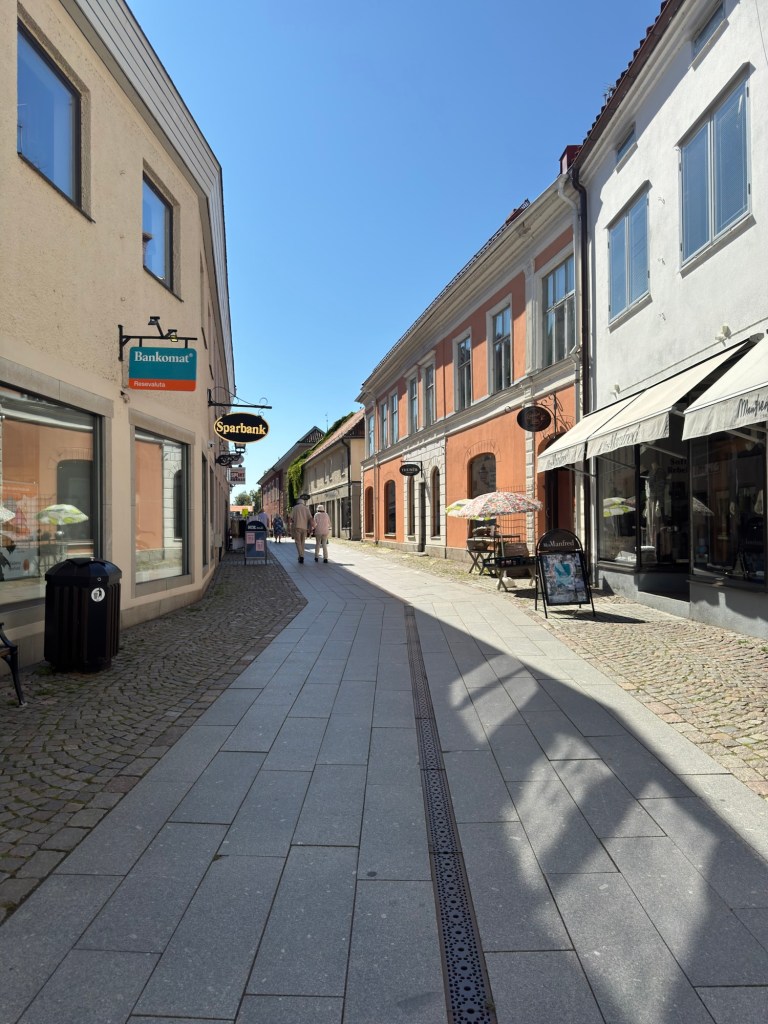 Innenstadt- kleine Häuser an engen Straßen.FußgängerzoneBeim Rathaus haben wir eine gebürtige Saarländerin kennengelernt, die seit 64 Jahren in Schweden lebt. Sie hat uns erzählt, dass das Städtchen auch liebevoll Rollatorstädtchen genannt wird, da sehr viele alte Menschen mit einem Rollator hier leben.Rathaus